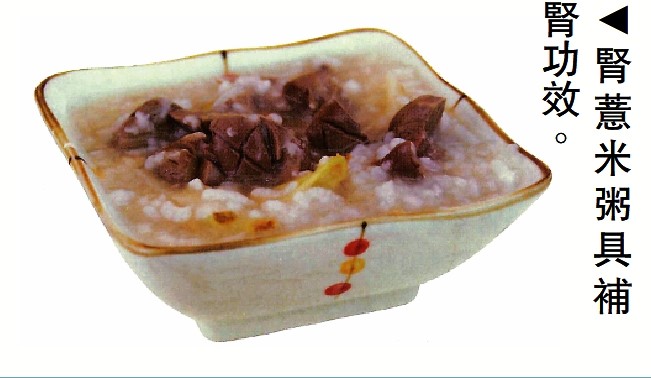 材料:豬腎一對、淮山100克、粳米200克、薏米50克。