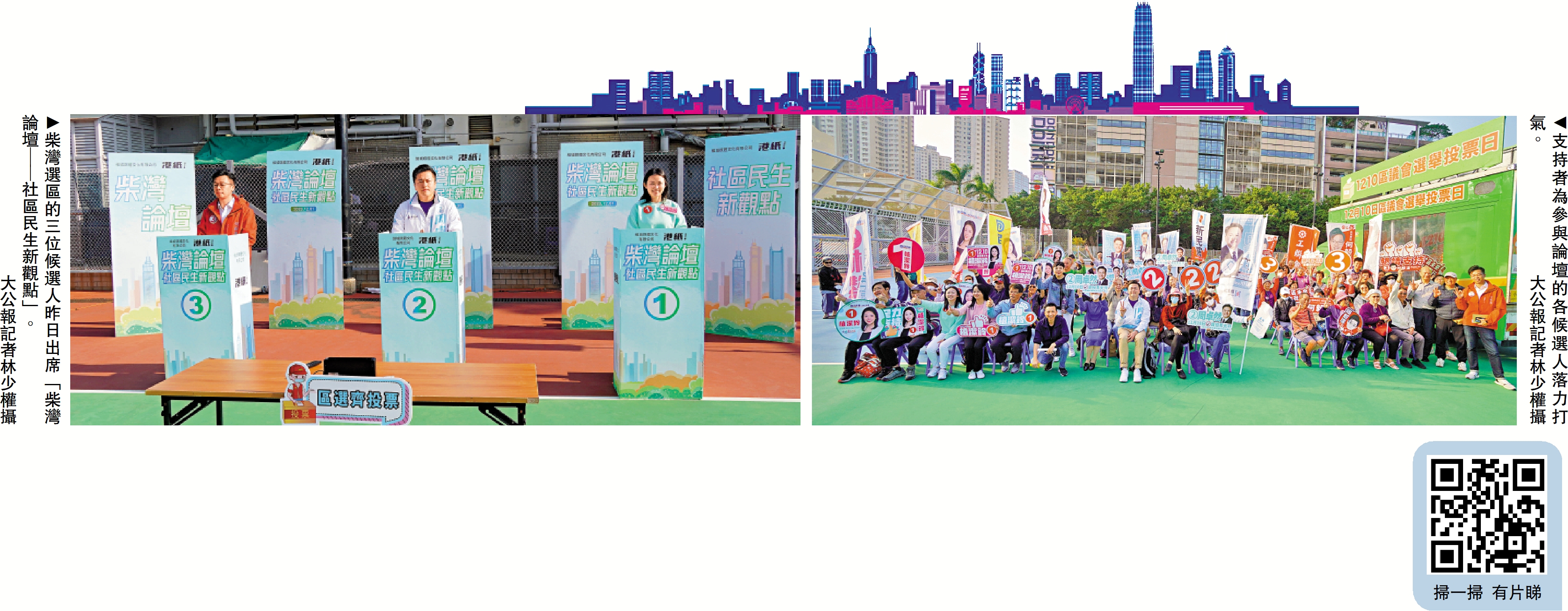【大公報訊】記者吳俊宏報道:新一屆區議會選舉將於本月10日舉行,「柴灣論壇─社區民生新觀點」昨日下午在小西灣海濱花園舉行。