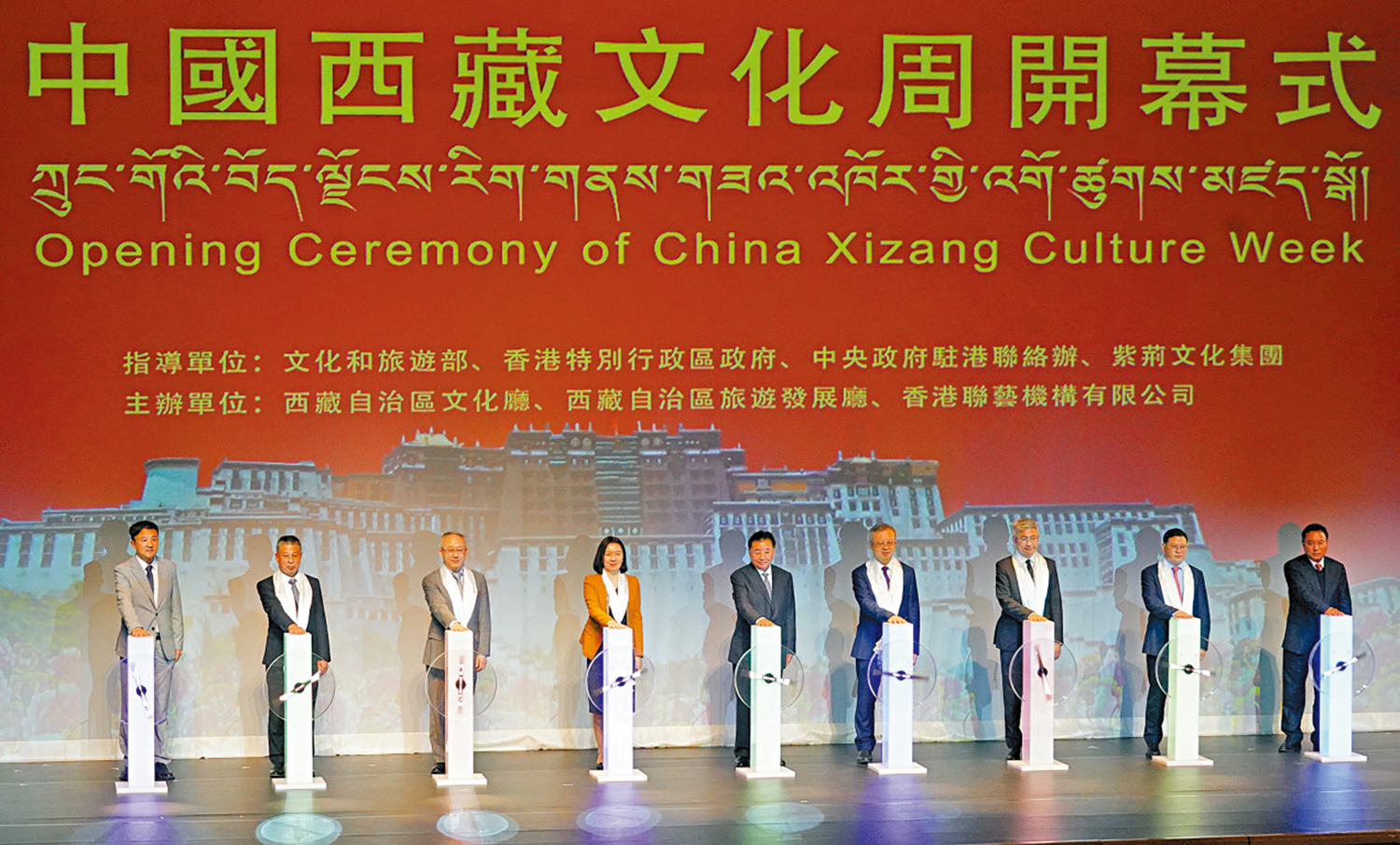 【大公報訊】為增進港人對雪域高原西藏的了解,推動西藏與香港在文化領域的交流與合作,多維度展現西藏文化的獨特魅力及傳承之美,由國家文化和旅遊部、香港特別行政區政府、中央人民政府駐香港特別行政區聯絡辦公室、紫荊文化集團指導,西藏自治區文化廳、西藏自治區旅遊發展廳、香港聯藝機構有限公司主辦的「中國西藏文化周」開幕典禮及民族歌舞劇《天邊格桑花》首演於前日(1日)假香港文化中心大劇院舉行。