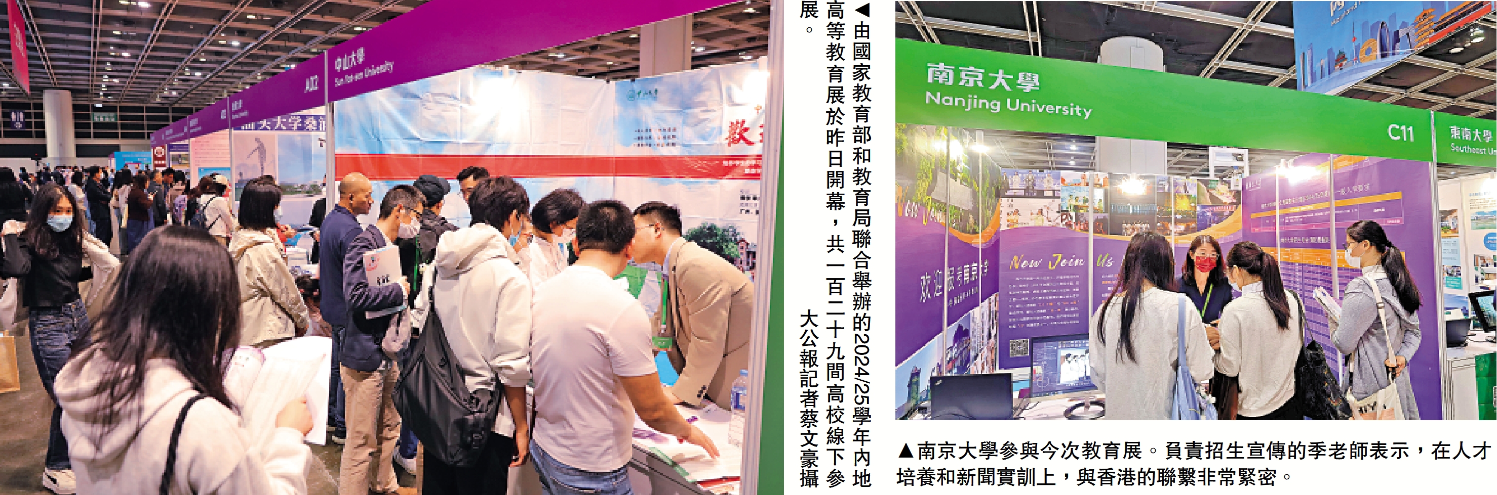 由國家教育部和教育局聯合舉辦的2024/25學年內地高等教育展於昨日開幕,一連兩日在香港舉行,共129間高校線下參展;多間參展院校公布招生詳情。有到場學生表示,想了解不同升學出路,未來有意回內地發展。