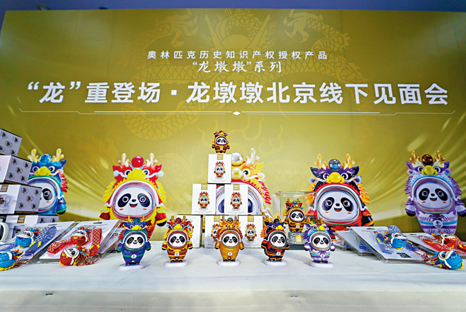 「龍墩墩」系列新品11月29日在國家體育場金色大廳發布,毛絨玩具、盲盒、鑰匙扣、徽章等產品廣受歡迎。作為奧林匹克歷史知識產權再次授權開發的文創產品,「龍墩墩」延續了中國春節文化、生肖文化特色,成為弘揚奧林匹克精神、創新發展中國文化的典型範例。