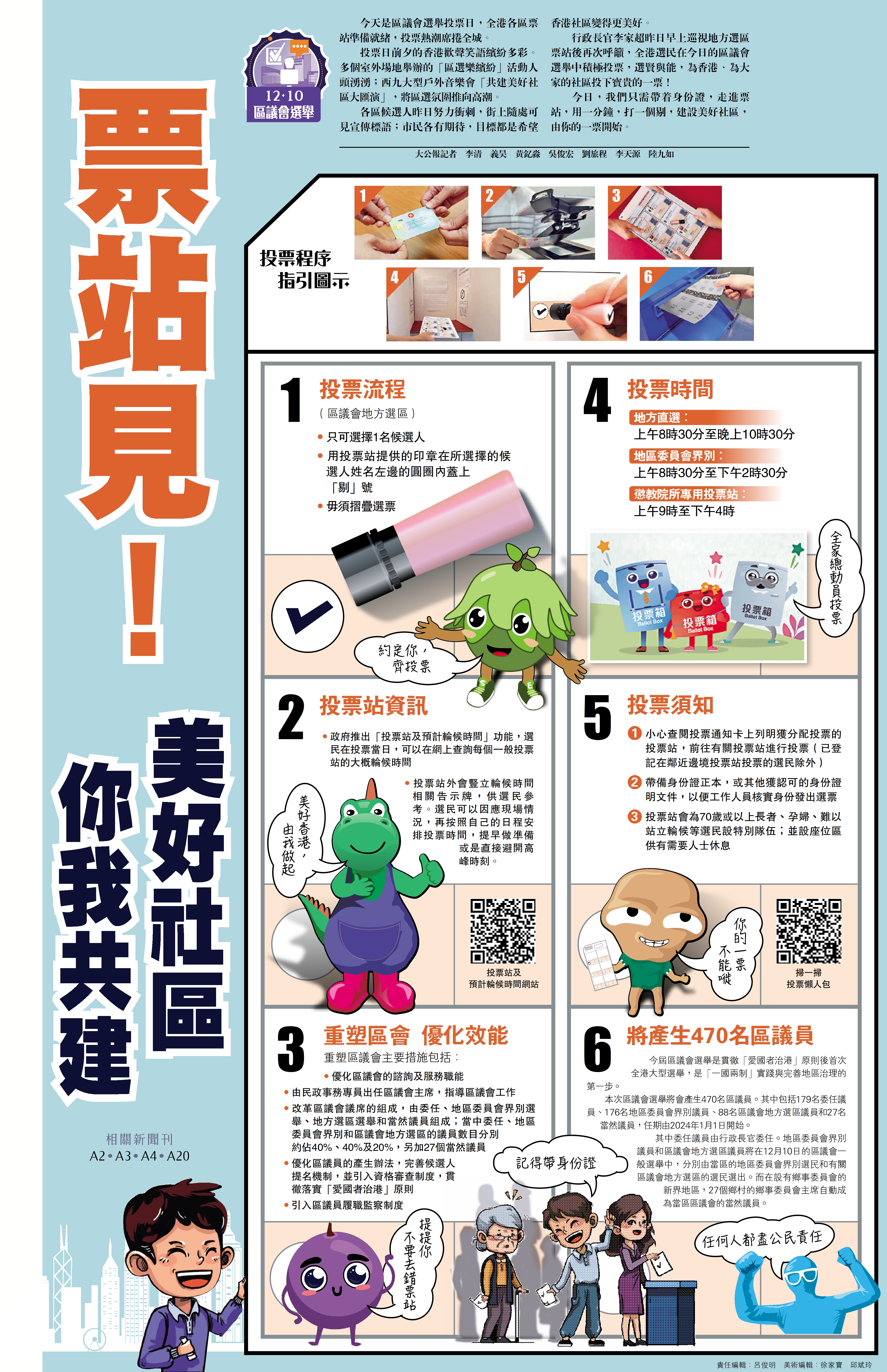 •政府推出「投票站及預計輪候時間」功能,選民在投票當日,可以在網上查詢每個一般投票站的大概輪候時間