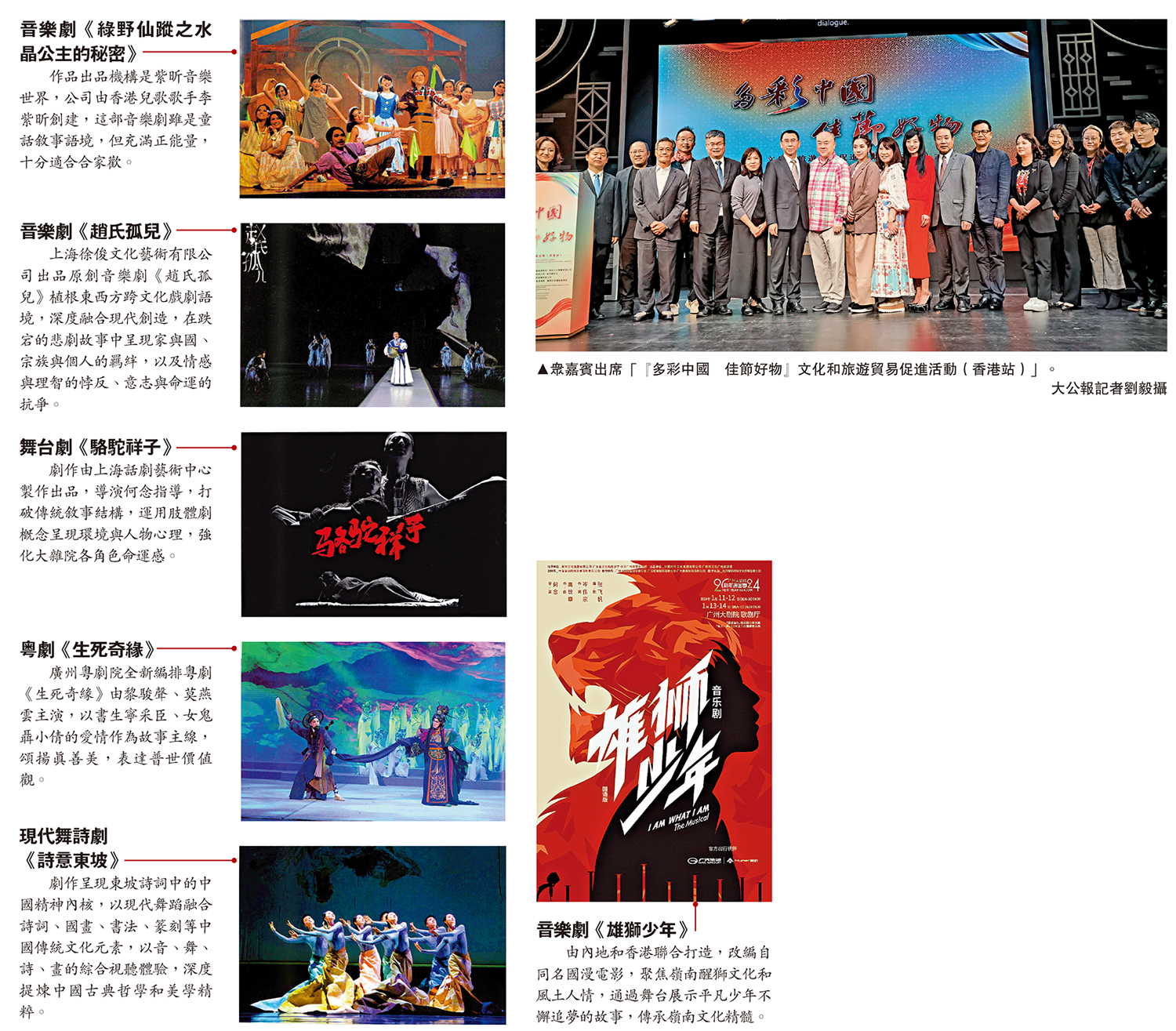 臨近年尾,正適合熱熱鬧鬧的文藝活動推介。由中國對外文化集團有限公司、紫荊雜誌社主辦的「『多彩中國 佳節好物』文化和旅遊貿易促進活動(香港站)」,昨日在西九戲曲中心茶館劇場舉行,匯聚不同機構代表推介一系列優秀的文藝演出等活動,旨在加強香港與內地的文化活動交流。\大公報記者 劉毅