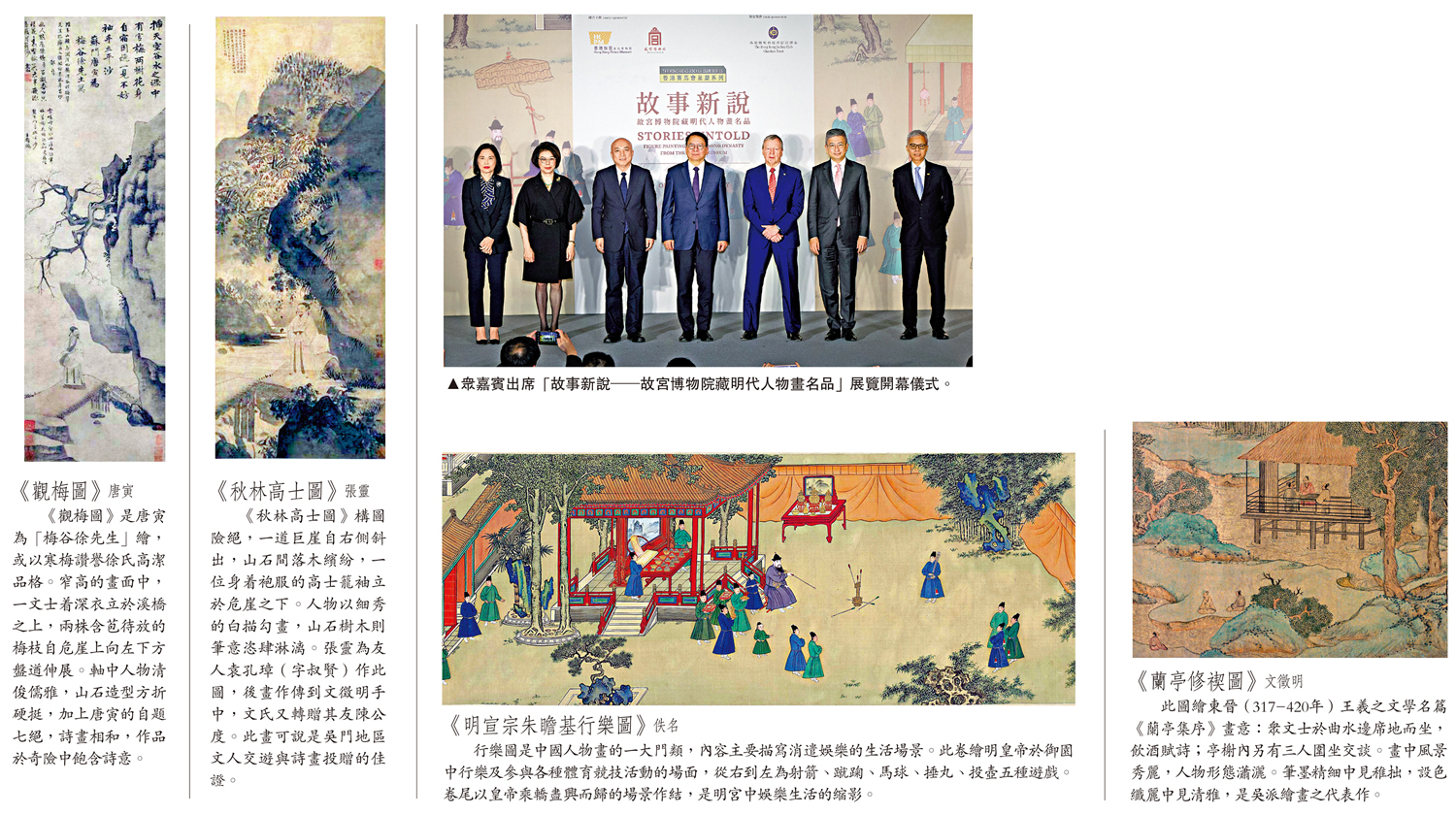 【大公報訊】由香港故宮文化博物館與故宮博物院聯合主辦的「故事新說──故宮博物院藏明代人物畫名品」展覽,今日(13日)起在香港故宮對公眾開放。展覽從故宮博物院珍藏的繪畫瑰寶中精選了81套珍品,當中14套為國家一級文物。