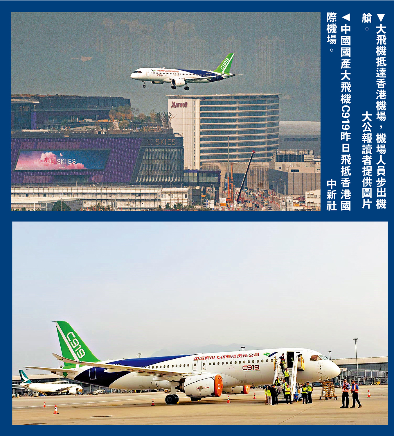 大公報記者就調整機隊編組時採購中國商飛客機的意向,上周以電郵方式向本地及海外多間航空公司查詢,國泰航空表示,歡迎航空業的創新之舉,這次來港展示國產大飛機,在現有製造商以外提供更多選擇,有助促進市場競爭。國泰航空及旗下香港快運期望與中國商飛等策略供應商建立合作關係,協助其研發符合公司運作需要的飛機,並提升該款飛機的國際競爭力。