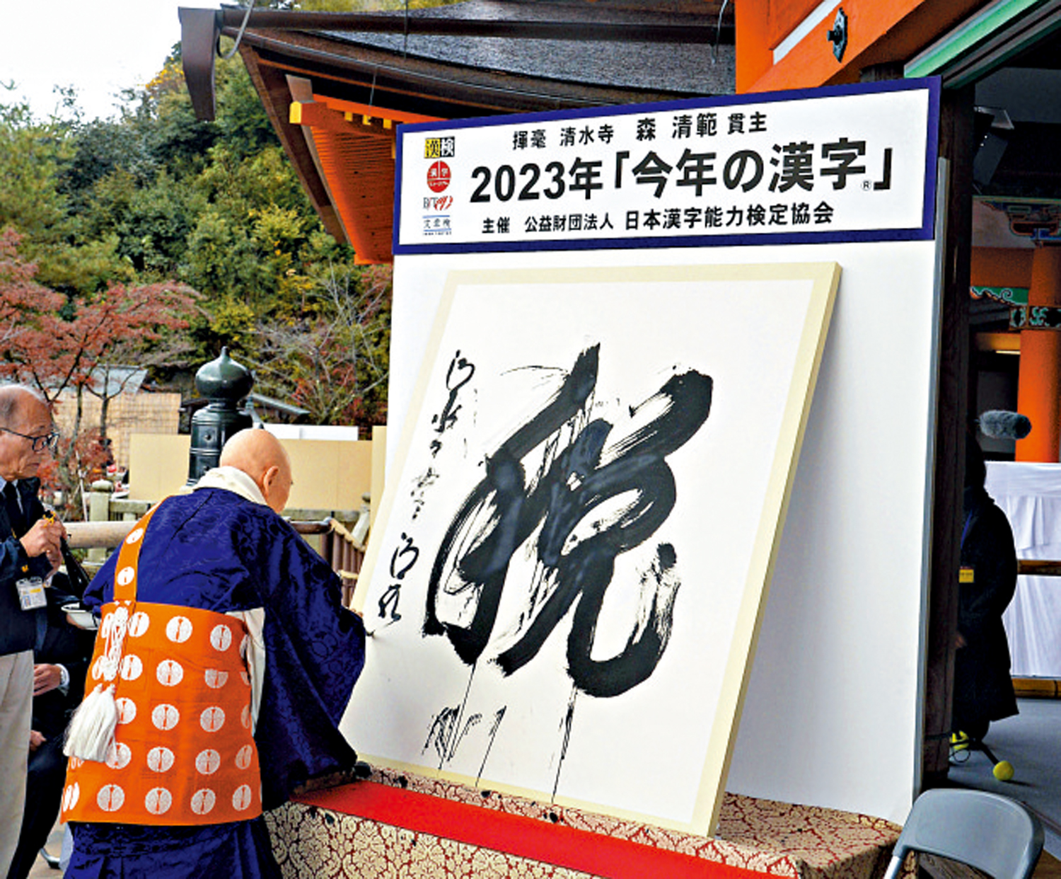 清水寺住持森清范用特大號毛筆揮毫寫下「稅」字。他表示:「我感到日本國民在密切關注稅金去向。放眼世界也充滿不穩定的氛圍,希望明年能寫下『和』字。」岸田表示,感受到民眾對稅的關注度很高,希望結合漲薪和稅收政策,確保國民可支配收入「不輸給物價上漲」。他選擇「克」字作為自己的年度漢字,理由是這個字包含了克服通縮、克服物價上漲的決心。