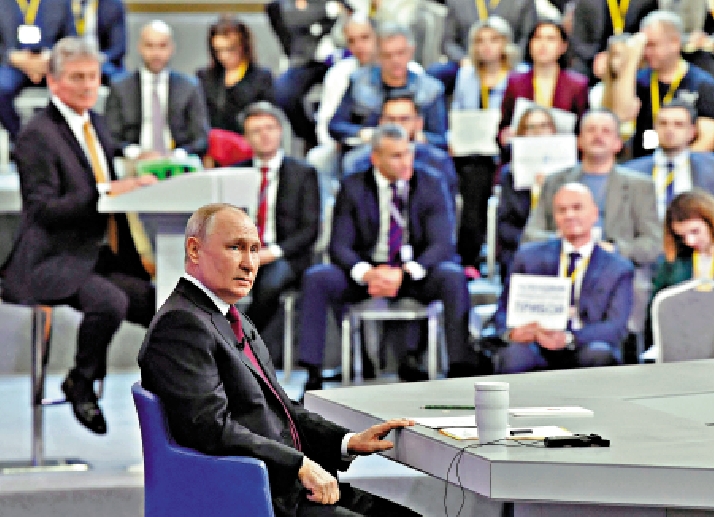 【大公報訊】綜合塔斯社、新華社報道:當地時間14日,俄羅斯總統普京在莫斯科出席「年度盤點」直播活動,就民眾和記者提出的問題進行現場作答。直播持續了約4個小時,普京共回答了67個問題,涉及中俄關係、俄美關係、俄烏衝突等熱點話題。普京說,中俄之間的合作達到前所未有的高度,他對此感到高興。