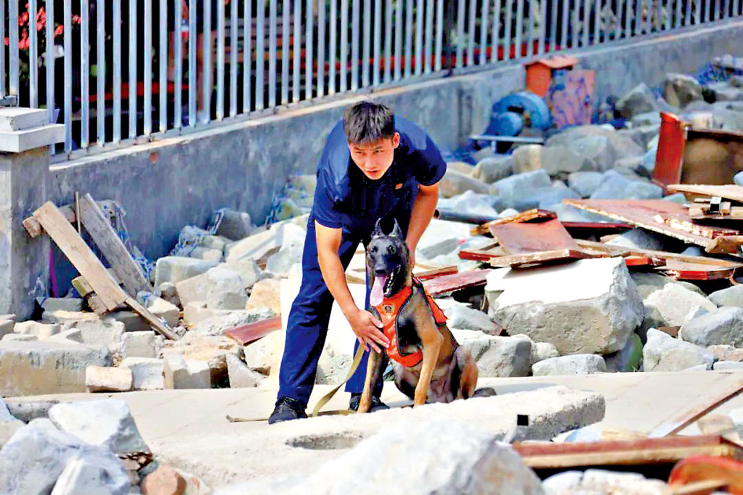 •100頭參訓搜救犬在各自訓導員的帶領下,依次進行了科目測試。經過2天的嚴格考核,共有95頭搜救犬順利結業,它們將被註冊芯片,正式參與執勤救援任務。