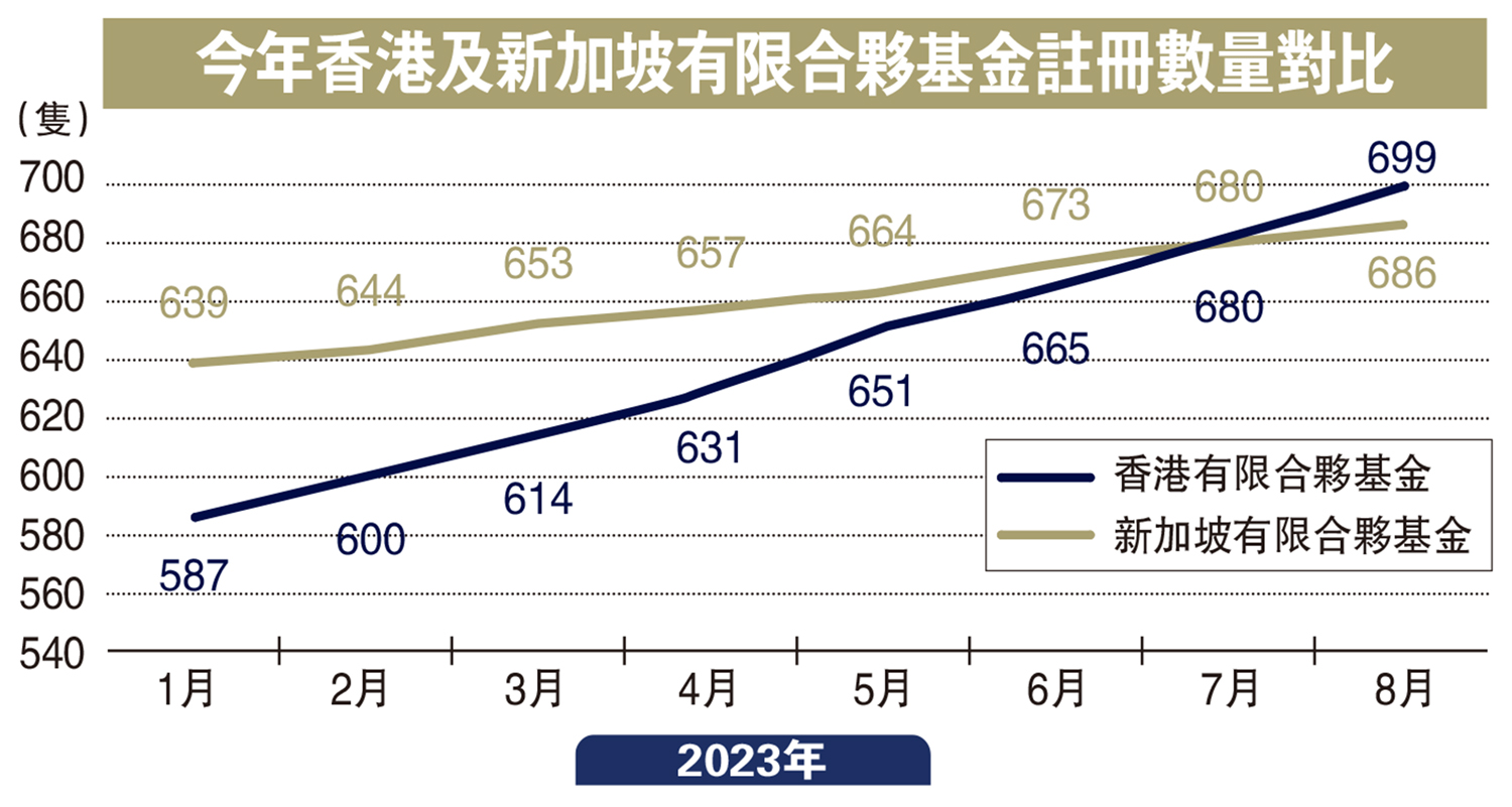 【大公報訊】香港有限合夥基金協會與金杜律師事務所昨日聯合發布《香港有限合夥基金2023年度報告》,指出今年8月底在港設立的有限合夥基金(LPF)數量首度超越新加坡,而截至11月底已有740項有限合夥基金在港註冊成立。值得一提的是,14年間在新加坡註冊的有限合夥基金為686隻,而香港註冊數量在3年內便達700隻大關。