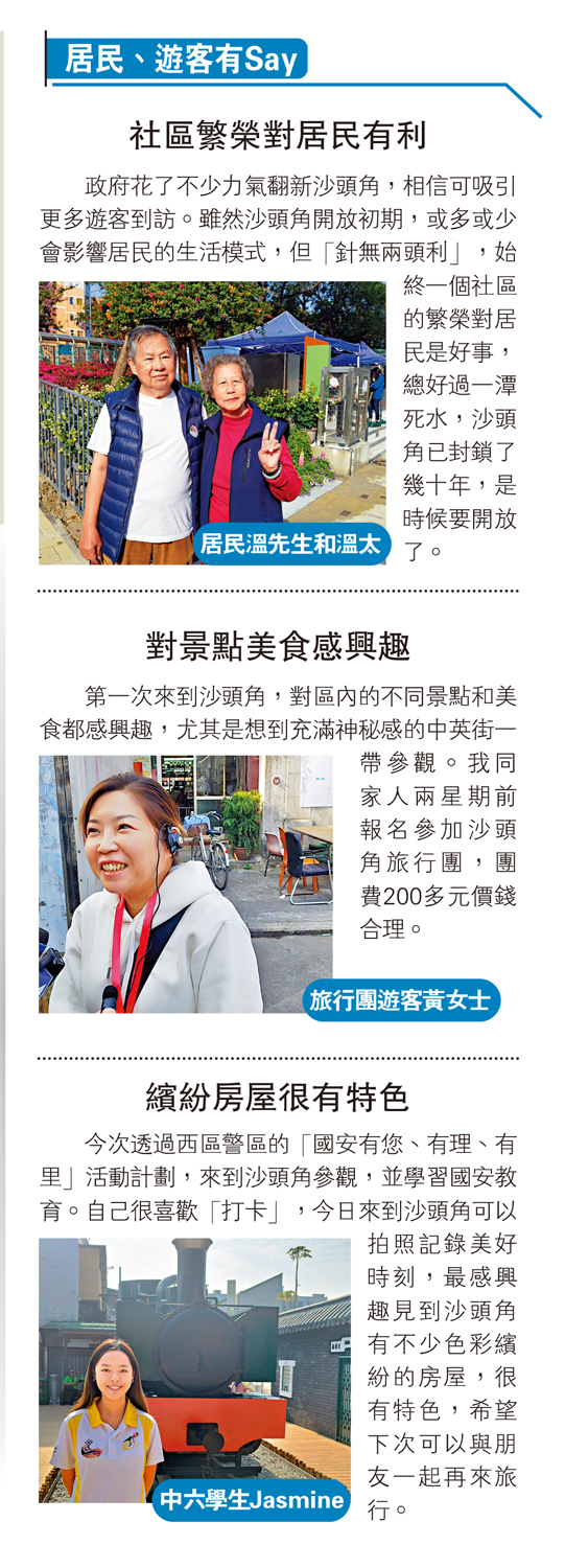 政府花了不少力氣翻新沙頭角,相信可吸引更多遊客到訪。雖然沙頭角開放初期,或多或少會影響居民的生活模式,但「針無兩頭利」,始終一個社區的繁榮對居民是好事,總好過一潭死水,沙頭角已封鎖了幾十年,是時候要開放了。