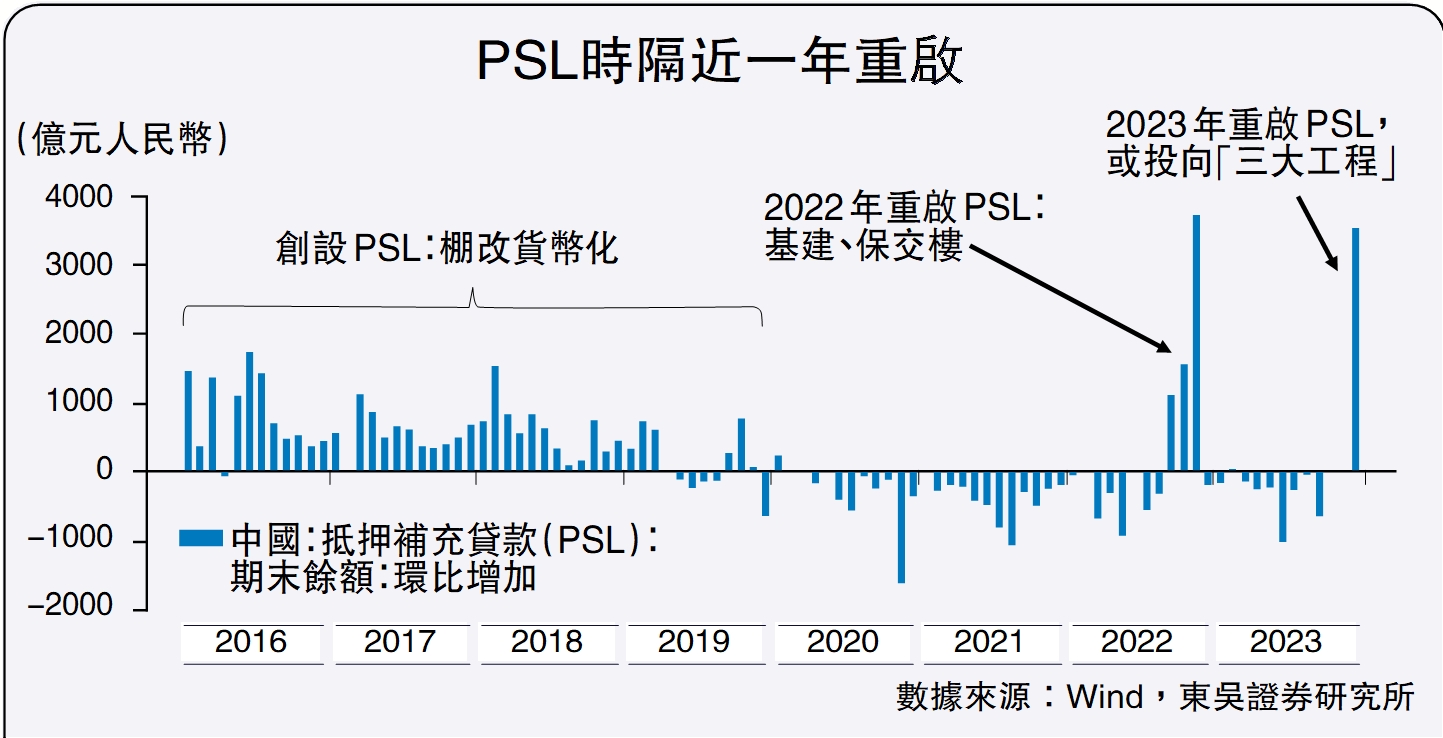 在2024年財政發力路徑不定與提高資金效益訴求的背景下,抵押補充貸款(PSL,Pledged Supplementary Lending)重啟能夠接續此前增發國債的穩增長力度,用城中村改造等「三大工程」來彌補市場出清帶來的缺口,支撐年初經濟「開門紅」的成色。