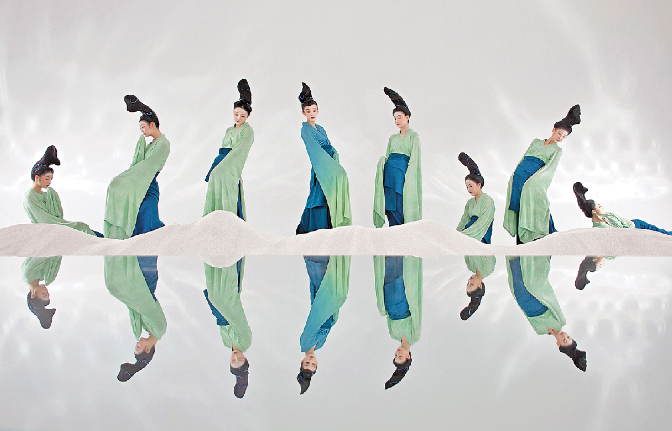 2021年首演的舞蹈詩劇《只此青綠》以北宋山水畫卷《千里江山圖》為基礎,透過精心構想的肢體意象,兼具含蓄內斂、張弛有度的動律姿態,凝聚獨特的氣勢、神韻。再者,原創的舞劇音樂,一眾舞蹈員極簡淨,帶點灰塵感的青綠色調服裝,鬢雲高聳的造型,配合舞台燈光、投映影像,台上多層的轉盤設計,數幅垂吊升降的弧形屏幕等光影聲色劇場手法,讓觀眾全方位地感受,經歷九百多年後,畫境中顯現的中華文化深厚歷史感和傳承歷程。\劉玉華