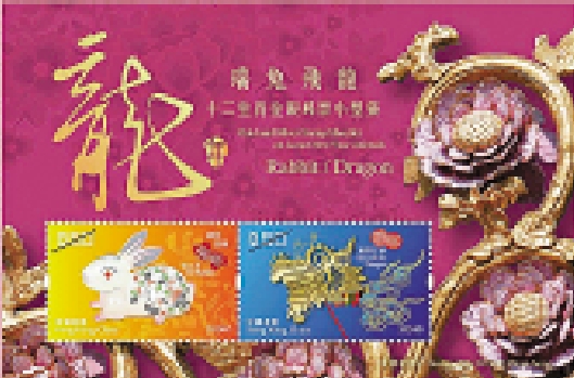 至於題為「瑞兔飛龍」的十二生肖金銀郵票小型張,生肖郵票上的瑞兔與飛龍分別以銀箔和金片製作,熠熠生輝,別具華麗感,帶出新春喜氣洋洋的氣氛。