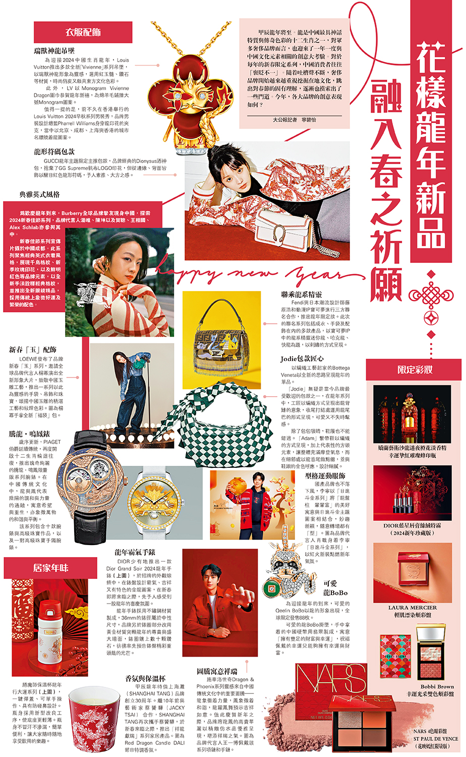 甲辰龍年將至。龍是中國最具神話特質與傳奇色彩的十二生肖之一,對眾多奢侈品牌而言,也迎來了一年一度與中國文化元素相關的創意大考驗。對於每年的新春限定系列,中國消費者往往「褒貶不一」。隨着吐槽聲不斷,奢侈品牌開始越來越重視挖掘在地文化,跳出對春節的固有理解,逐漸也摸索出了一些門道。今年,各大品牌的創意表現如何?\大公報記者 寧碧怡