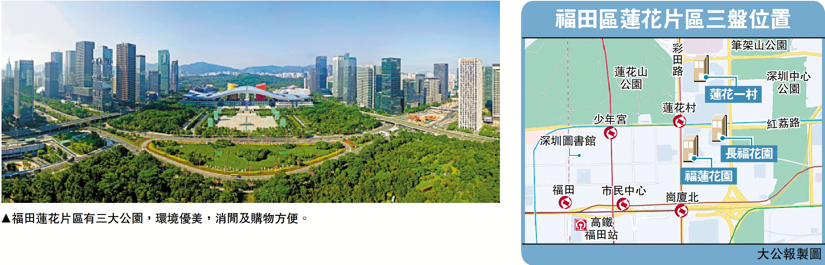 深圳福田蓮花片區位置優越,西面是蓮花山公園,東北方為筆架山公園,東面是深圳中心公園,居家氛圍濃厚,是深圳老一輩居民的置業理想地。近年,蓮花片區搭上福田打造環中心公園活力圈的東風,城市面貌大變身,生活配套更完善,受到有孩家庭等剛需置業者的青睞。目前片區住宅每平米均價約8萬元(人民幣,下同;約8.8萬港元),較高峰期回調約三成。\大公報記者 毛麗娟深圳報道