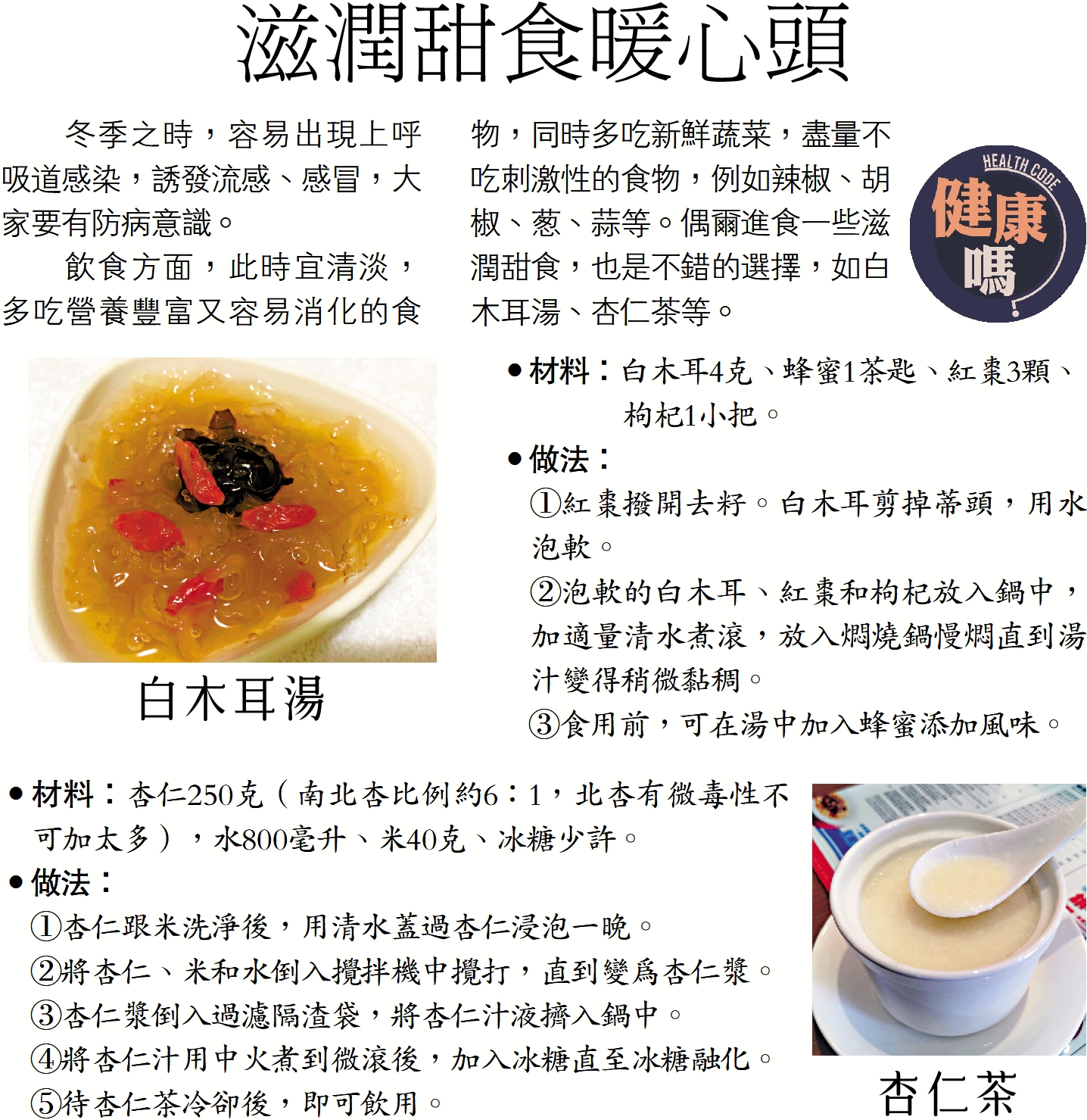 •材料:白木耳4克、蜂蜜1茶匙、紅棗3顆、枸杞1小把。