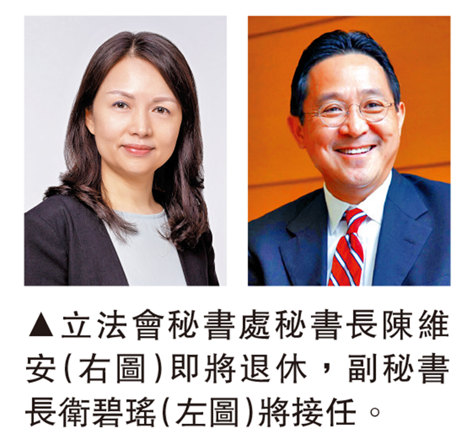 【大公報訊】記者秦英偉報道:立法會行政管理委員會(行管會)昨日宣布,委任現任立法會秘書處副秘書長衛碧瑤,接替陳維安出任立法會秘書處秘書長。
