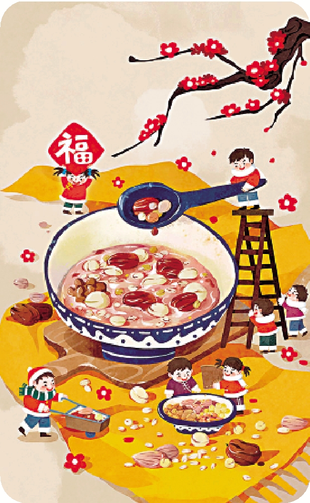 人們在臘月初七晚上就忙碌起來,洗米、泡果、剝皮、去核、精揀,然後在半夜時分開始煮,再用微火燉,一直燉到第二天清晨,臘八粥才算熬好了。