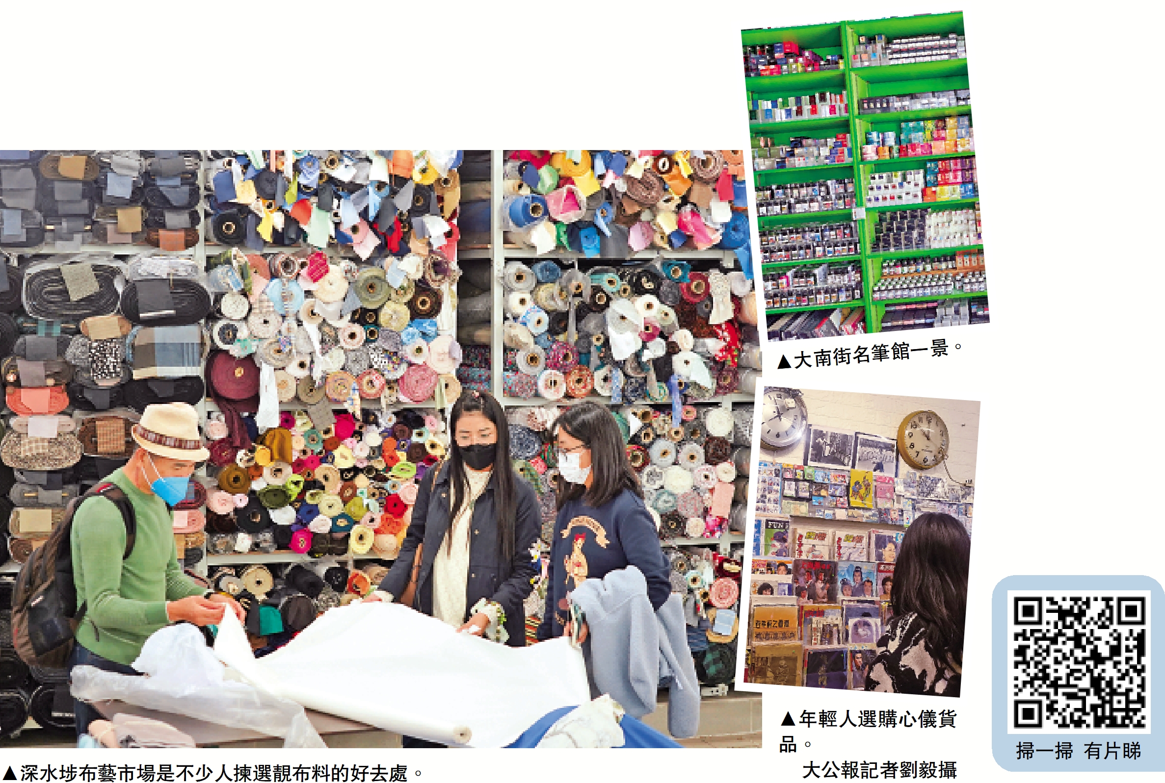 舊區是否能煥發新生機?作為本地傳統舊區,它留在人們腦海的是市民生活圖景,從以前遍布布店的街道到如今文藝青年品嘗香濃咖啡的打卡點,深水埗不僅承載着過往的印記,更願意伴隨歲月流逝而作出相應的改變。在區內走走停停,目之所及尚有若干布店擔當着述說歷史的使命,但更多的是青年人的身影,他們在咖啡店、或者一些文創產品店停下,在新舊變化之間,感受一份富有煙火氣的生命力。\大公報記者 劉 毅