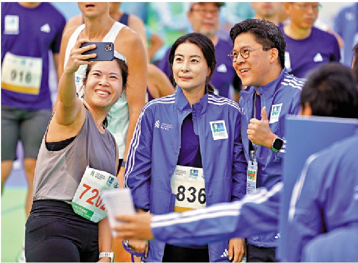 圖:霍啟剛與妻子郭晶晶,吸引其他跑手與他們合照。
