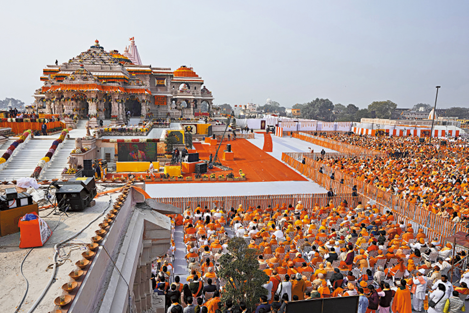 印度教徒相信,穆斯林信徒於1528年拆毀了阿約提亞原本的羅摩神廟,並在原址上蓋了一座清真寺;1992年,部分印度教徒破壞了位於阿約提亞的巴布里清真寺,引發大規模宗教衝突,造成超過2000人死亡,其中大部分是穆斯林信徒。這片土地的所有權陷入爭議。2019年,印度最高法院允許在巴布里清真寺遺址上建造印度教寺廟,並下令將另一塊土地用於建造清真寺。印度將於4-5月舉行大選,莫迪以及其領導的印度人民黨希望憑藉羅摩神廟,增加獲得第三個總理任期的勝算。有反對者指責,莫迪利用該寺廟謀求政治利益,或再釀宗教衝突。