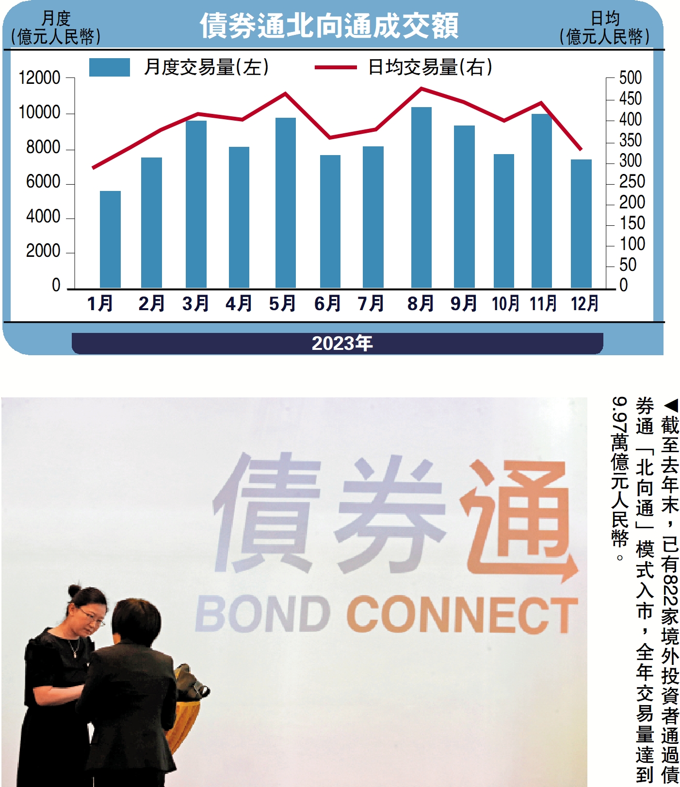 最新數據顯示,截至2023年末,已有822家境外投資者通過債券通「北向通」模式入市,2023年全年「北向通」交易量達到人民幣9.97萬億元,境外投資者在銀行間市場的債券託管餘額達到人民幣3.67萬億元,中國元素資產的國際影響力和競爭力顯著提升。