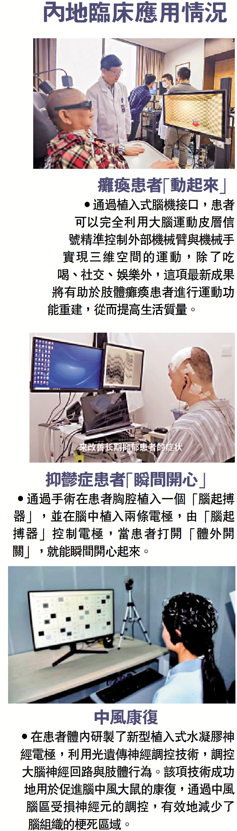 •通過手術在患者胸腔植入一個「腦起搏器」,並在腦中植入兩條電極,由「腦起搏器」控制電極,當患者打開「體外開關」,就能瞬間開心起來。
