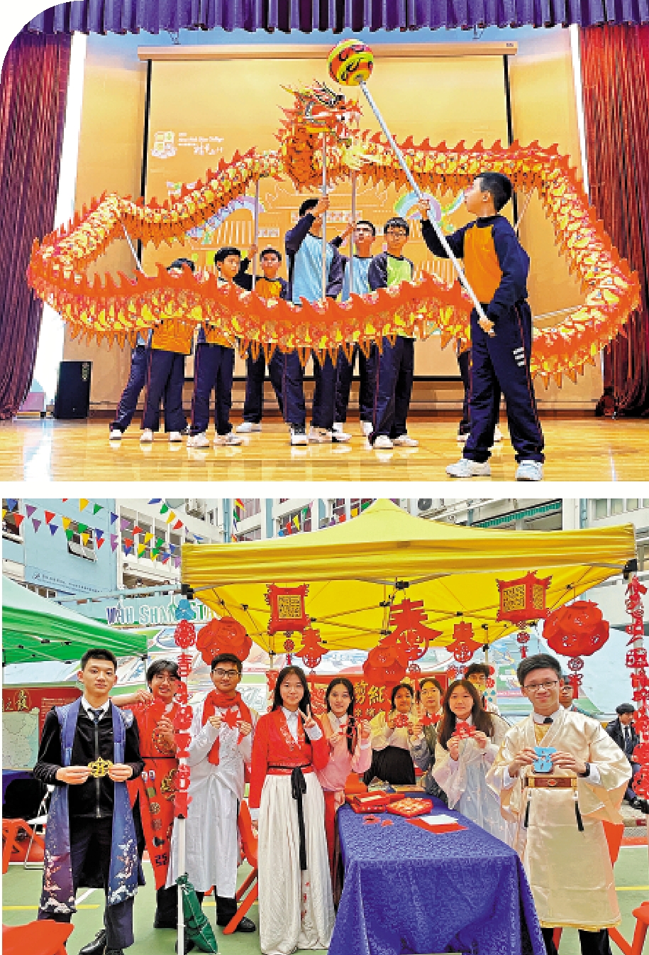 【大公報訊】記者魏溶報道:校園迎新春,中華基督教會桂華山中學,於昨日舉辦首屆「共賀龍年·中華文化周」活動,不僅有舞龍及變臉等表演,亦設置攤位可體驗穿華服、剪紙及拓印等活動,逾600人參與。學校期望通過中華文化周活動讓學生更直觀體驗中華文化,增強國民身份認同,亦希望非華語學生感受到中華傳統文化魅力。