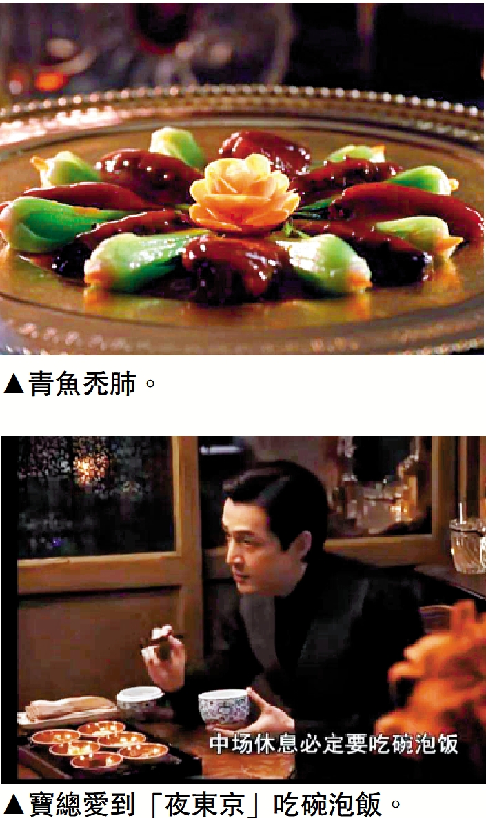 黃河路和進賢路,碰哭精(愛哭的女生)同討債鬼,是重疊在寶總時間裏的回憶。黃河路上他風光獨佔,但不管酒席多熱鬧,生意多排場,最後也要來「夜東京」吃碗「寶總泡飯」。泡飯比不上聚光燈下的鐘鳴鼎食,一碗隔夜飯、一碟小鹹菜,便成了一頓飯,隨意到有些寒酸。劇中寶總吃的這份,倒是費盡心思的頂配級,光飯搭子就有六碟,黃泥螺、櫻桃肉、紅腐乳、肉鬆、醬瓜、油條,坐齊一套滿堂紅,靈得很。