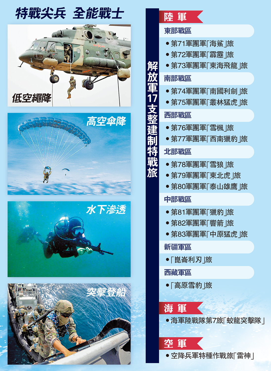 圖:特戰尖兵 全能戰士、解放軍17支整建制特戰旅