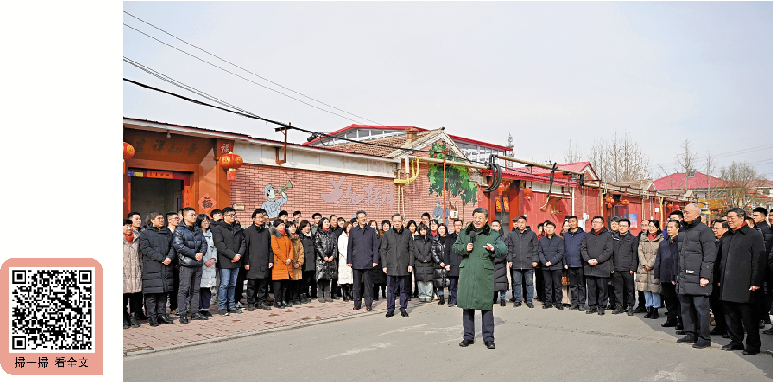 災後恢復生產生活的村子,秩序井然;古色古香的街區,人流如織;莊嚴肅穆的紀念館,記載的是實現人民解放進程中重要一役;市委和市政府工作匯報會上,深刻闡述現代化建設和高質量發展,落腳點也在人民的福祉。習近平總書記來到人民中間:「農曆新年是龍年,龍在中華文化中有着勇敢奮進、活力無窮、吉祥如意等多重寓意,寄託着美好的願景。大家對新的一年要充滿信心,把日子過得更好。」