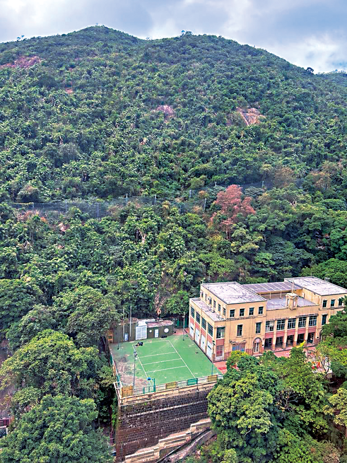 我拎着明火靚粥和「卜卜脆」油炸鬼,以為排隊得來的香港美食立刻成為疫後重逢的主角,怎知美食不如美景,甫一進門同窗馬上領着我到窗前,說要看大麻鷹。大麻鷹?市區不常見哩。聞言我有點忘形了,忙放下發泡膠盒,聽她指點江山。房子位處高層,常有大麻鷹窗外翱翔,還有蝴蝶翩躚,呀,蝴蝶竟能飛得那麼高!同窗從不誑語,我深信不疑,未見鳥蹤蝶影,卻見對面山丘黛濃翠鬱中,一座西式古典建築物幽隱其上,遺世獨立,超然物外,那究竟是什麼地方呢?