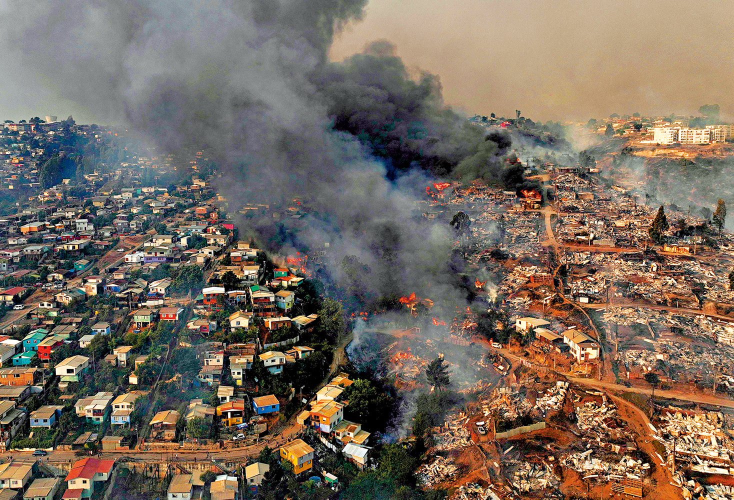 【大公報訊】綜合BBC、路透社、半島電視台報道:智利中部發生歷來最嚴重的山火,死亡人數增至最少112人,目前仍有數百人失蹤,兩個省進入緊急狀態,至少1.4萬棟房屋受損。智利總統博里奇表示,這是一場「巨大的悲劇」,估計死亡人數還將大幅上升。在救援持續進行的同時,當局指出,今次山火有數處同時起火,不排除山火是由蓄意縱火引起。