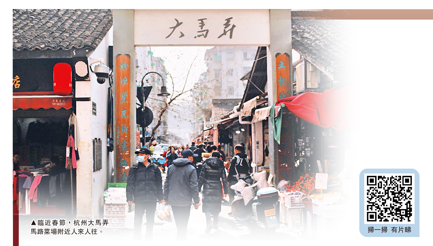 「老闆我要一隻白切雞」「羊肉還有嗎,來個半斤」……此起彼伏的叫賣聲在浙江杭州大馬弄的深處翻湧着。這條長230米,寬5米左右的小弄堂。與附近的察院前巷與城隍牌樓巷共同構成了一個熱鬧非凡的「馬路菜場」。現如今,這條承載了杭州市井氣息的街巷早已不是「老杭州」們的專屬去處。這條弄堂通過短視頻和網帖傳播,在小紅書、抖音等內地社交平台走紅,為年輕人所了解、所喜愛。不少年輕遊客也慕名來這裏打卡拍照、品嘗小吃、購買年貨,柴米油鹽四季更迭,方寸之間,是濃濃的年味,和平凡的生活。\大公報記者 連愍鈺