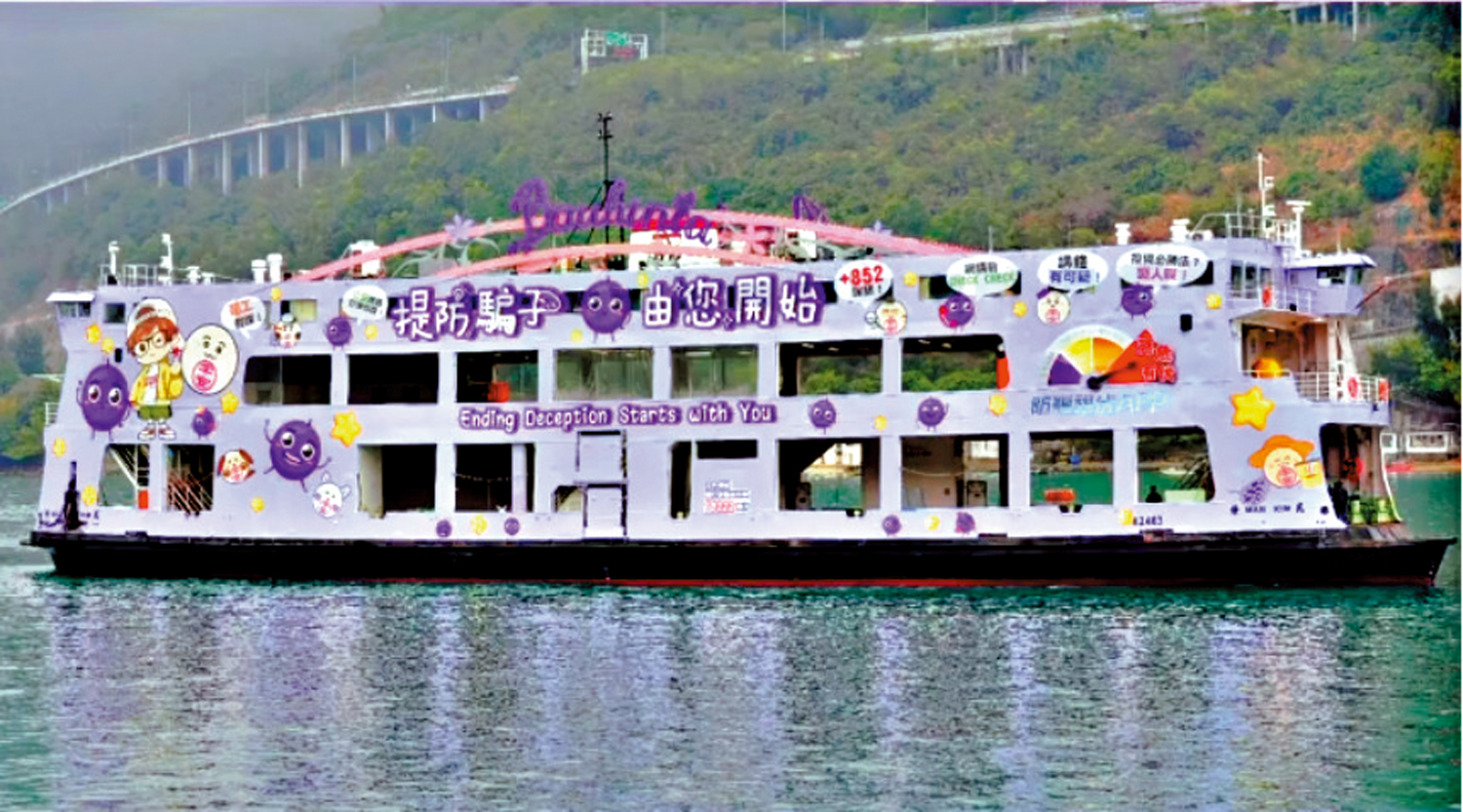 【大公報訊】記者古倬勳報道:水警總區、警務處公共關係部聯同反詐騙協調中心於昨日(8日)舉行「防騙渡輪平安號」啟航禮,未來一年防騙渡輪會在日間往返觀塘及北角,夜間提供維港遊服務,向市民及遊客宣傳防騙訊息。