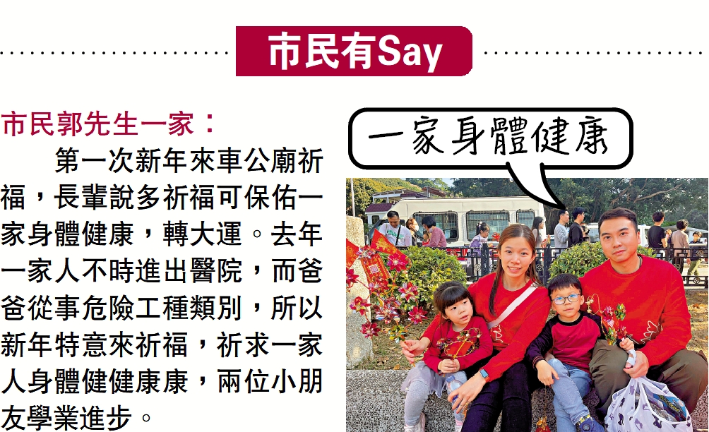 第一次新年來車公廟祈福,長輩說多祈福可保佑一家身體健康,轉大運。去年一家人不時進出醫院,而爸爸從事危險工種類別,所以新年特意來祈福,祈求一家人身體健健康康,兩位小朋友學業進步。