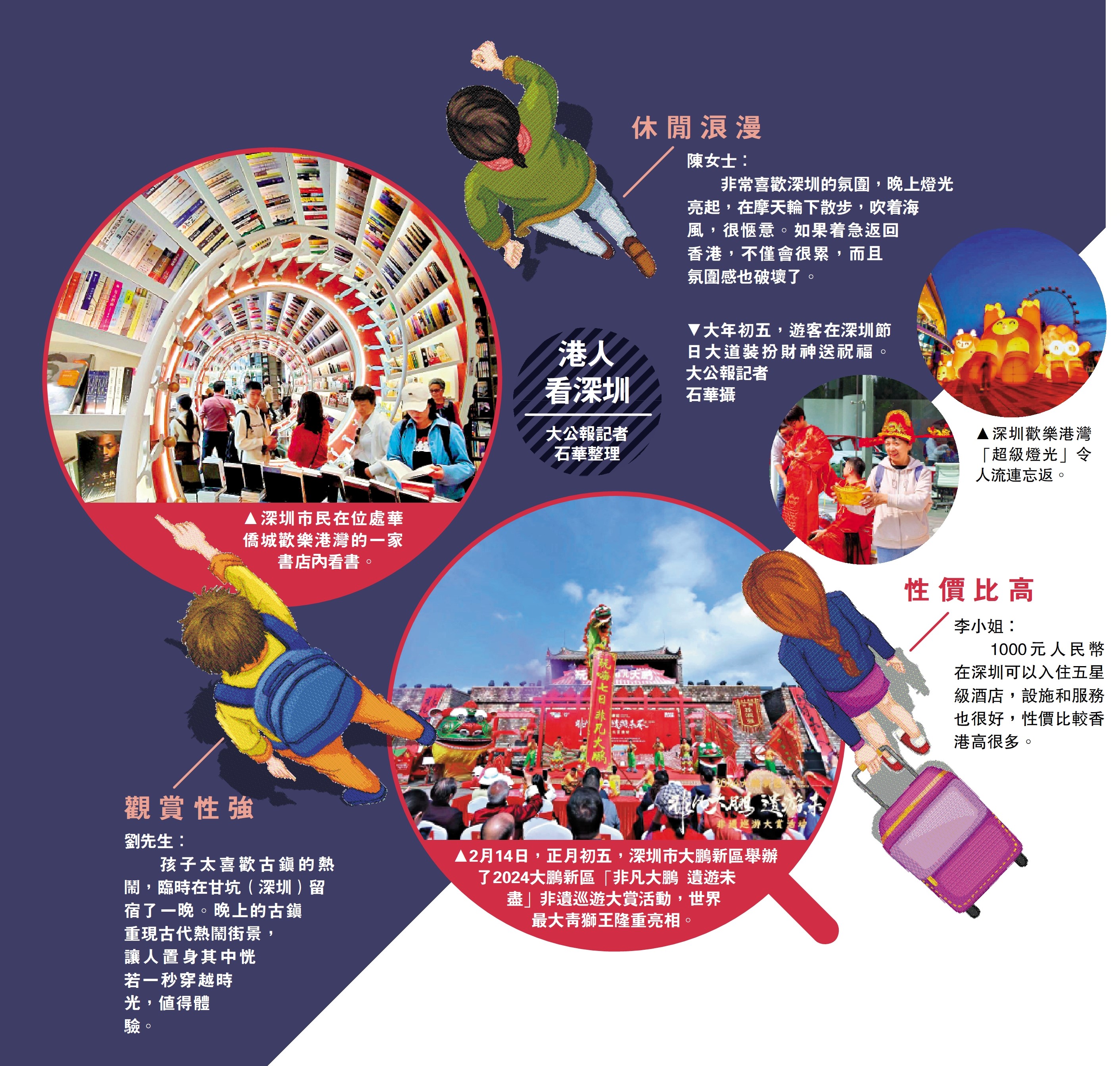 「1000元人民幣在深圳可以住到五星級酒店,設施和服務也很好,這比香港的性價比要高很多。」李小姐告訴記者,全面通關以後,她和朋友來深圳更頻繁,有時行程太晚,會提前訂酒店住一晚。「今年春節深圳的活動太多了,從商場到景區,從餐廳到影院都讓人流連忘返,一天的時間根本不夠。」