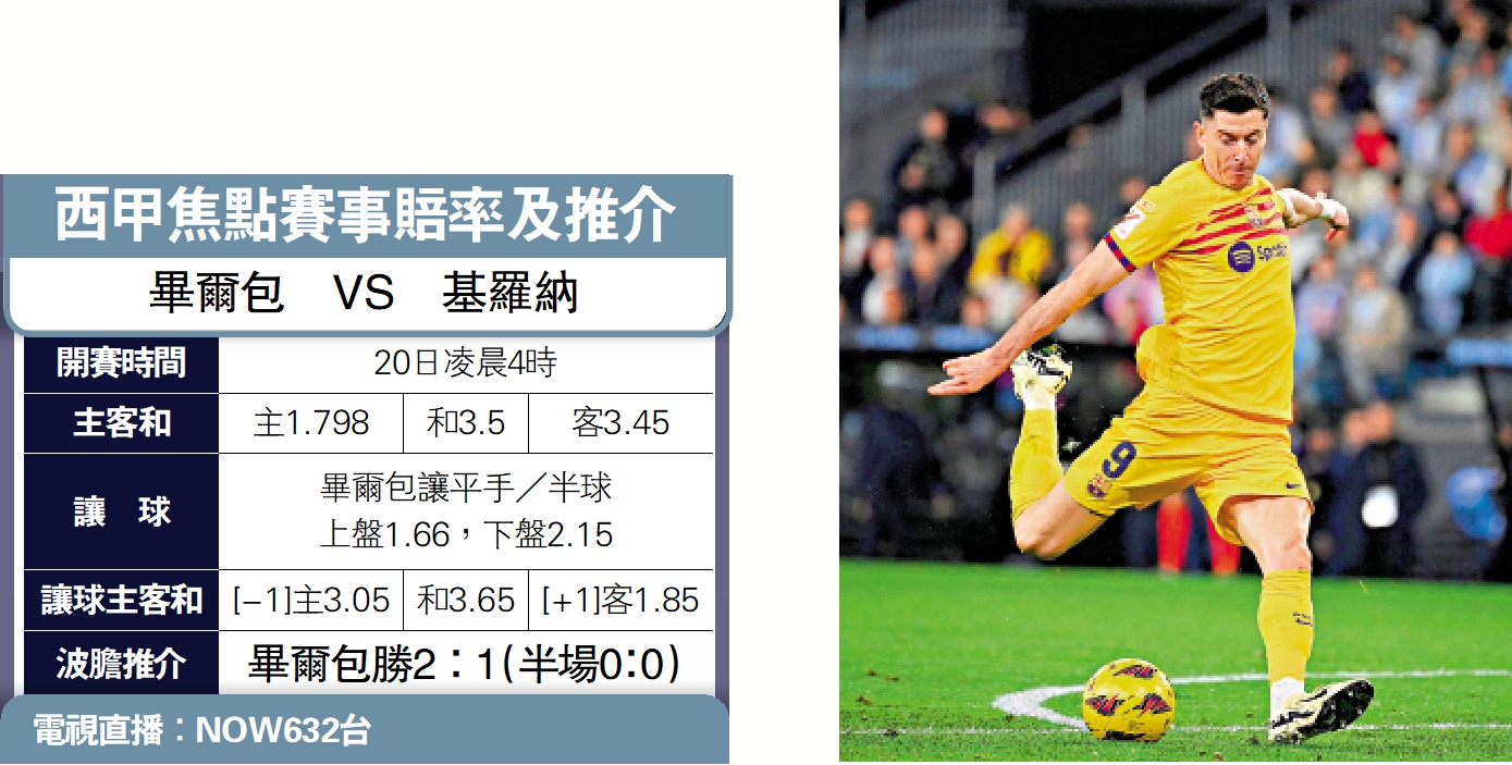 【大公報訊】綜合足智彩、馬卡報、sportsmole報道:路遙知馬力,一度與皇家馬德里在西甲叮噹馬頭的基羅納,漸漸被皇馬拉開距離,近期戰績開始回落,明晨造訪畢爾包也極可能再度失分,「讓球」主隊畢爾包小讓平/半,必取上盤。(NOW632台明晨4時直播)