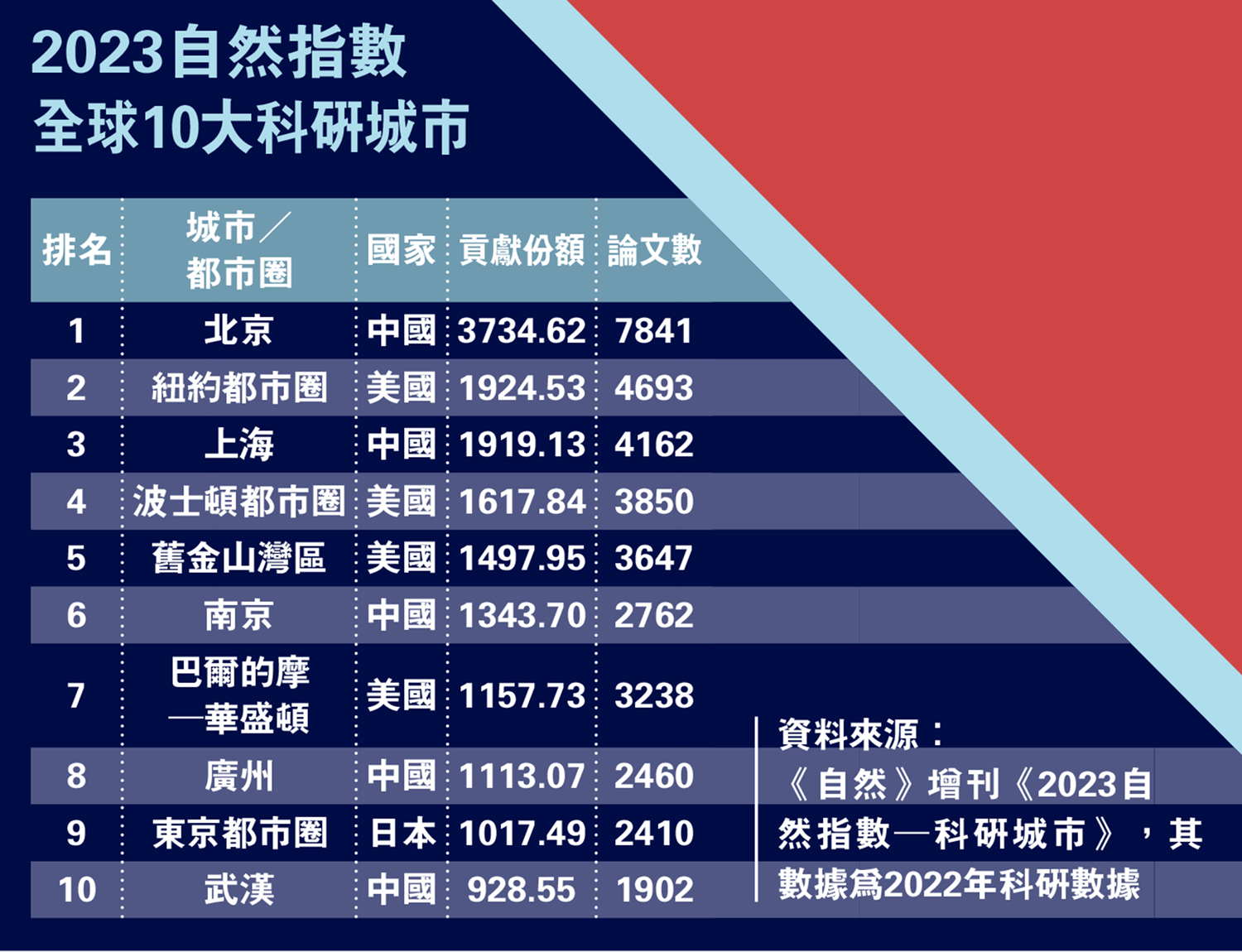 圖:2023自然指數全球10大科研城市