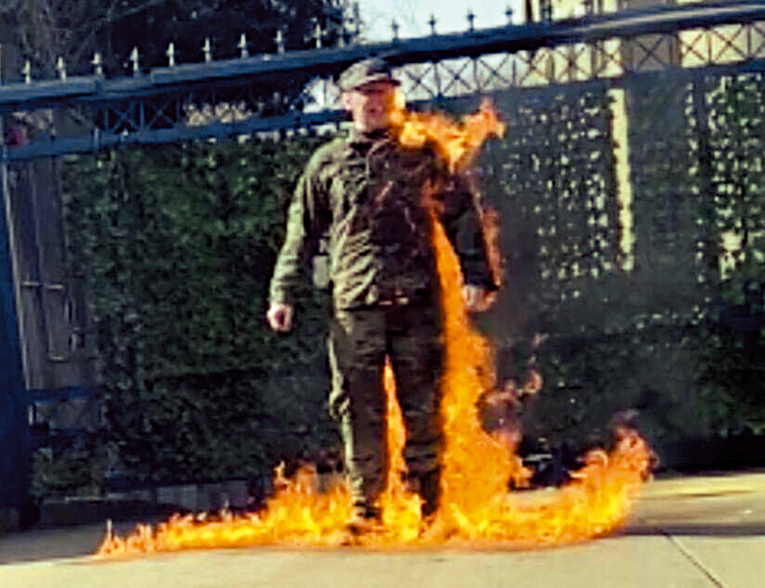 該名現年25歲的男子布什內爾,來自得州聖安東尼奧市。他在社交媒體直播了自焚過程。他在自焚前說:「我將不再參與種族滅絕行動,我要通過這種極端方式進行抗議。」點火後,他反覆高喊「解放巴勒斯坦」的口號。