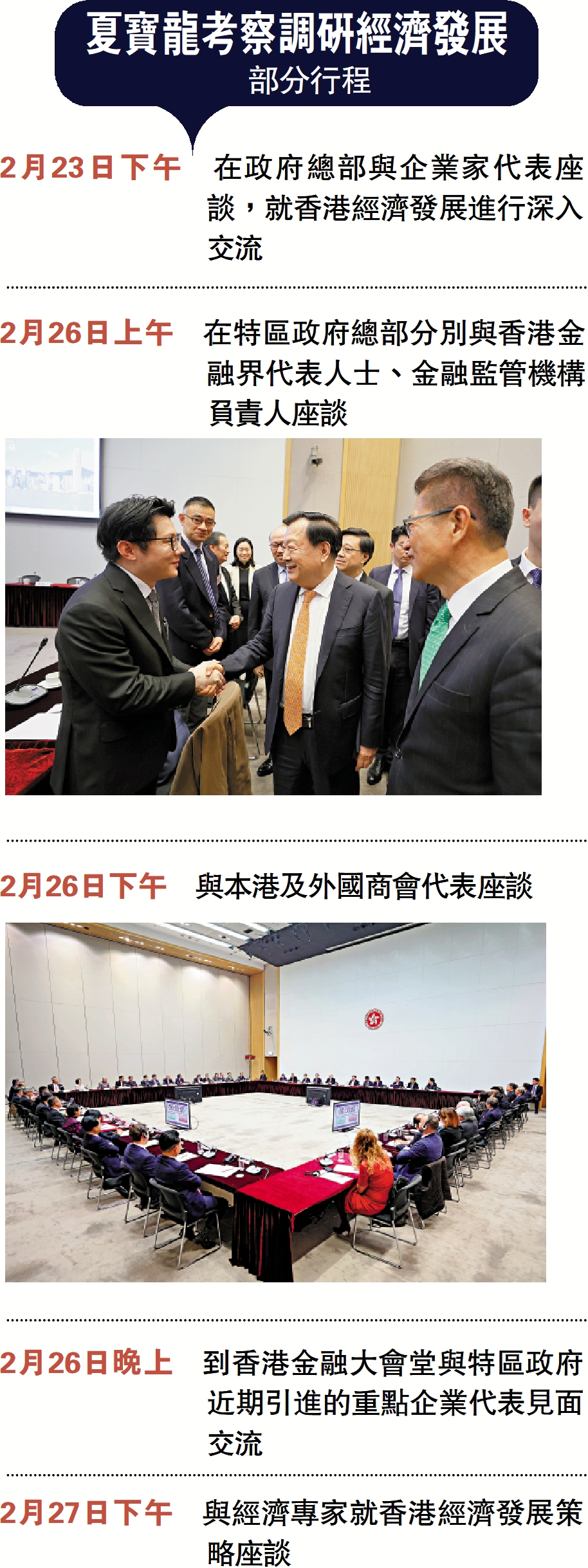 2月23日下午 在政府總部與企業家代表座談,就香港經濟發展進行深入交流
