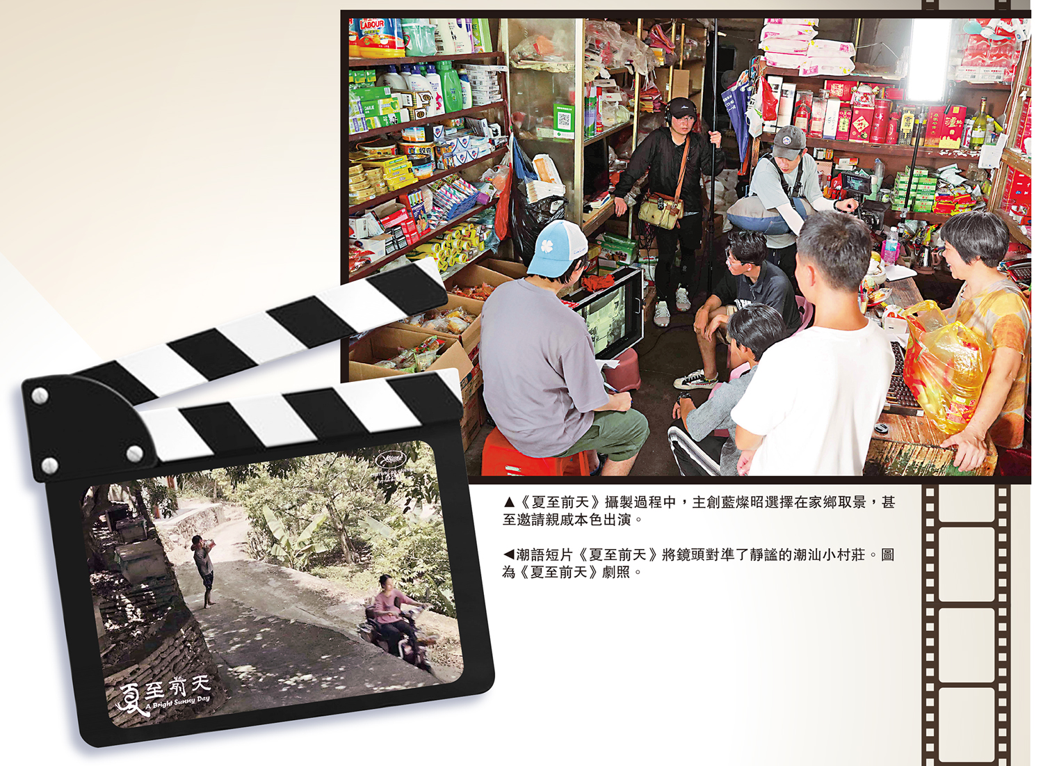 在踏入28歲的2023年,青年電影人藍燦昭帶着潮汕親戚本色出演、講述小鎮青年故事、全程潮州話的短片《夏至前天》來到法國康城(戛納)電影節。陽光、農田,鏡頭中的潮汕小村靜謐美好,如同夢境。藍燦昭覺得,以電影向家鄉致敬,又讓海內外觀眾有機會通過電影認識潮汕乃至中華文化,「是一件特別棒的事情。」長期根植在嶺南百姓生活底層的潮汕鄉土文化,在包括藍燦昭在內的一眾潮汕青年的潮流創作和現代演繹下,成為「新國潮」的一道亮麗風景線,為傳統文化的傳承與發展積極探路尋求突破。\大公報記者 黃寶儀、帥誠