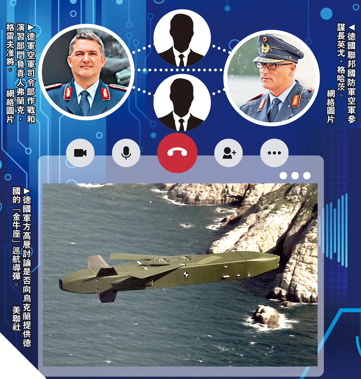 【大公報訊】3月1日,今日俄羅斯(RT)電視台曝光了一段38分鐘時長、標記為2月19日的電話會議錄音,當中多名德國軍官討論向烏克蘭提供「金牛座」導彈具體細節,並秘密幫助烏克蘭轟炸克里米亞大橋等話題,其中一名德國軍官還稱,美英兩國軍方「早已直接參與了俄烏衝突」。