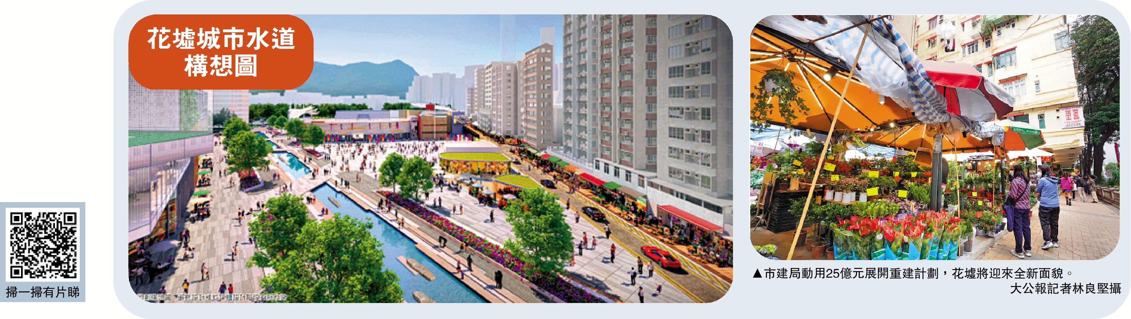 項目並會興建多用途綜合大樓、住宅、酒店或辦公大樓,市建局預計2035至36年完工後,可提供約1350個住宅單位,受影響的花店營運者未來能夠回遷。有立法會議員表示,希望翻新後花墟一帶成為旅遊新景點。\大公報記者 王亞毛