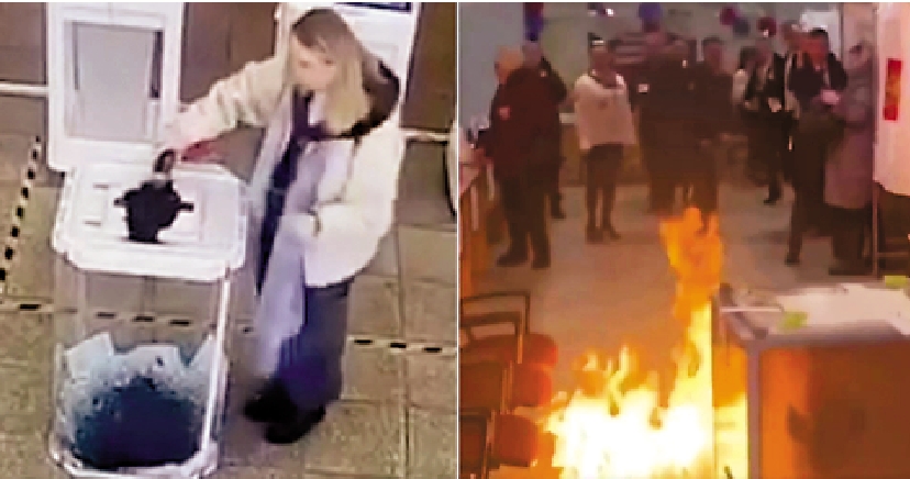 另外,俄羅斯官員稱,總統選舉投票的首日,多人因故意破壞投票站設施而被捕。破壞行動包括向投票箱中倒入綠色染料、在投票站縱火、投擲煙花爆竹和汽油彈等行為。目前,路透社稱至少8人被捕,法新社稱至少9人被捕。俄羅斯選舉委員會主席帕姆菲洛娃譴責破壞者為「卑鄙小人」,並透露一些破壞者承認受人指使,故意擾亂選舉,酬金高達10萬盧布。