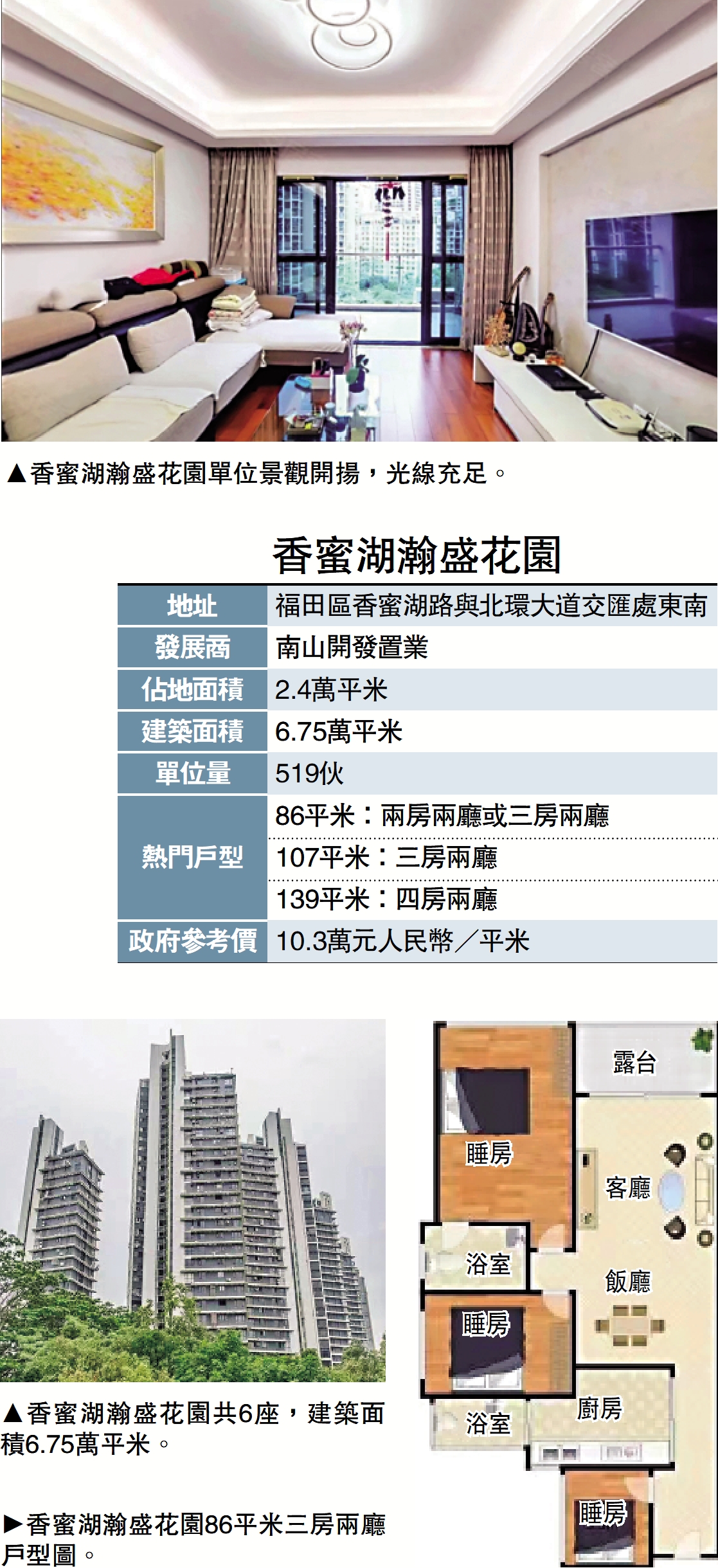 香蜜湖瀚盛花園位於香蜜湖北區,鄰近地鐵2號線香蜜站,2008年入伙,是該片區比較新的樓盤。所帶學校為僑鄉外國語中小學,現已改名福田實驗學校,屬於福田老牌名校。