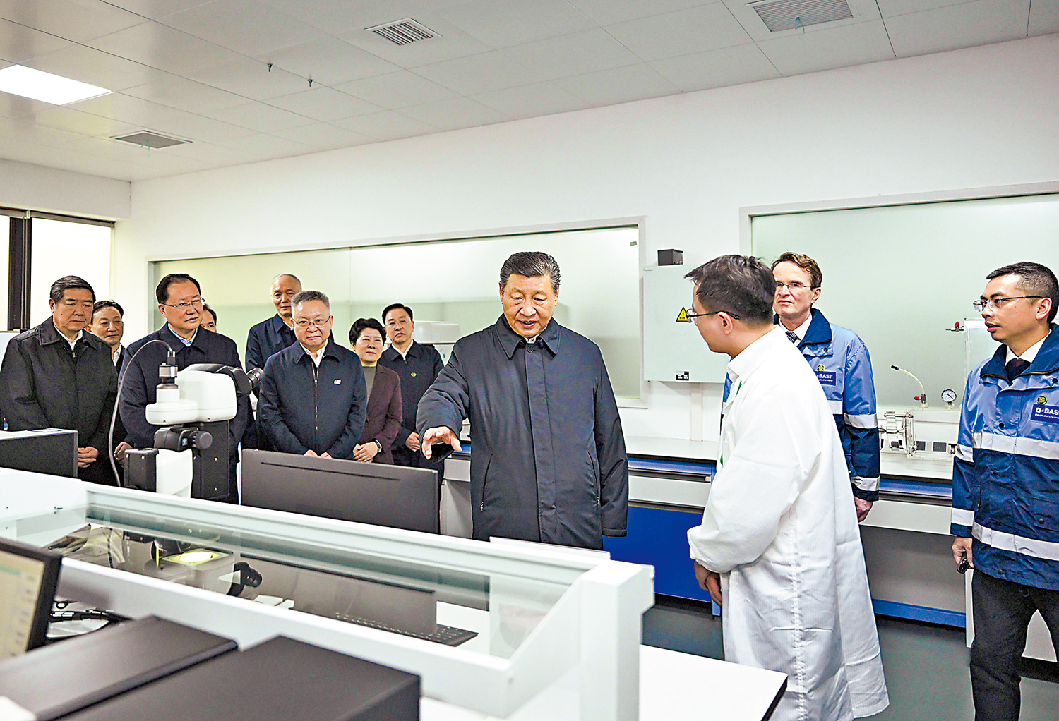 隨後,習近平來到巴斯夫杉杉電池材料有限公司考察。這是一家主營鋰離子電池正極材料研發、生產和銷售的中德合資企業。習近平聽取當地加快發展新質生產力、擴大高水平對外開放等情況介紹,察看企業產品展示,了解材料性能測試情況和電池生產流程。他強調,科技創新、高質量發展是企業不斷成長壯大、立於不敗之地的關鍵所在,民營企業、合資企業在這方面都可以大有作為。中國開放的大門會越開越大,我們願意同世界各國加強交流合作,歡迎更多外國企業來華投資發展。