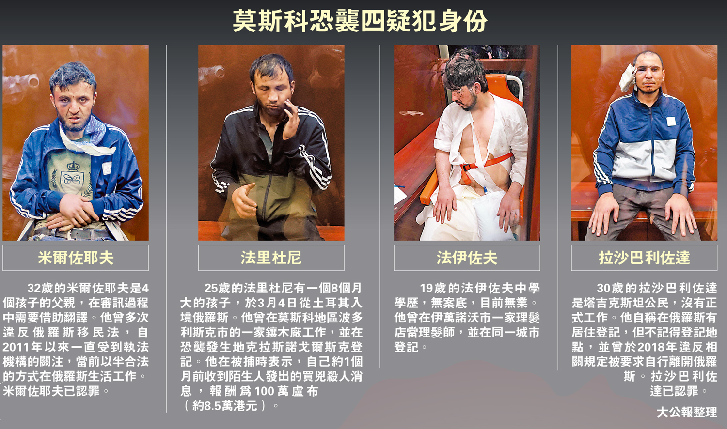 30歲的拉沙巴利佐達是塔吉克斯坦公民,沒有正式工作。他自稱在俄羅斯有居住登記,但不記得登記地點,並曾於2018年違反相關規定被要求自行離開俄羅斯。拉沙巴利佐達已認罪。