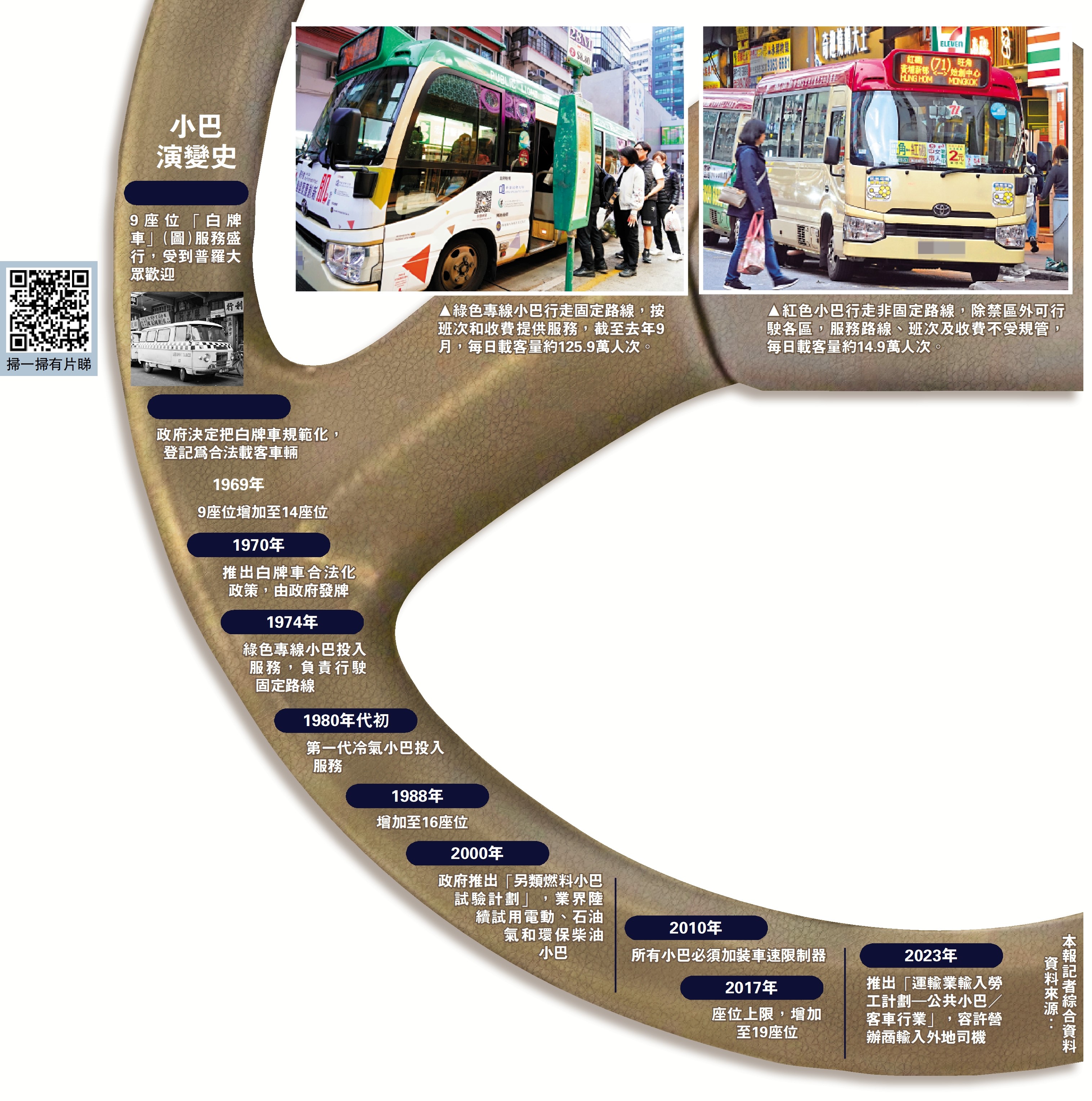 政府規定全港小巴上限為4350輛,其中近20%為紅色小巴,除了清水灣、天水圍等禁區禁止駛入外,其服務路線、班次及收費不受規管。經營小巴線的優越知能巴士創辦人李凱翔提出,紅色小巴擴闊營業模式,包括小巴留位服務、點對點的上落客等,透過「客制化」生意模式,增加不同客源。