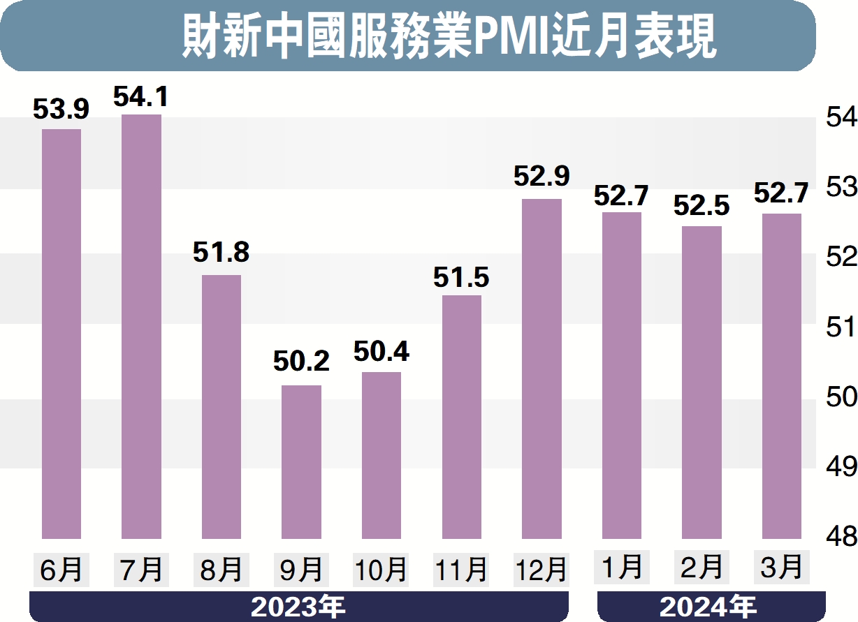 值得一提的是,3月財新服務業用工量指標連續兩個月下降,惟降幅輕微且較2月放緩。樣本企業表示,為提升生產效率而裁撤的冗餘,以及人員辭職等,是導致用工收縮的主因。